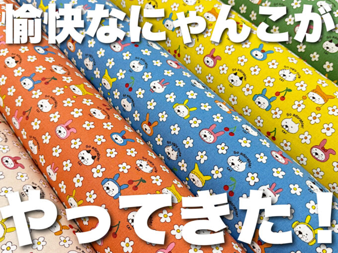 プリント生地 今作も、さっそく大好評。コットンこばやし「愉快なにゃんこシリーズ」