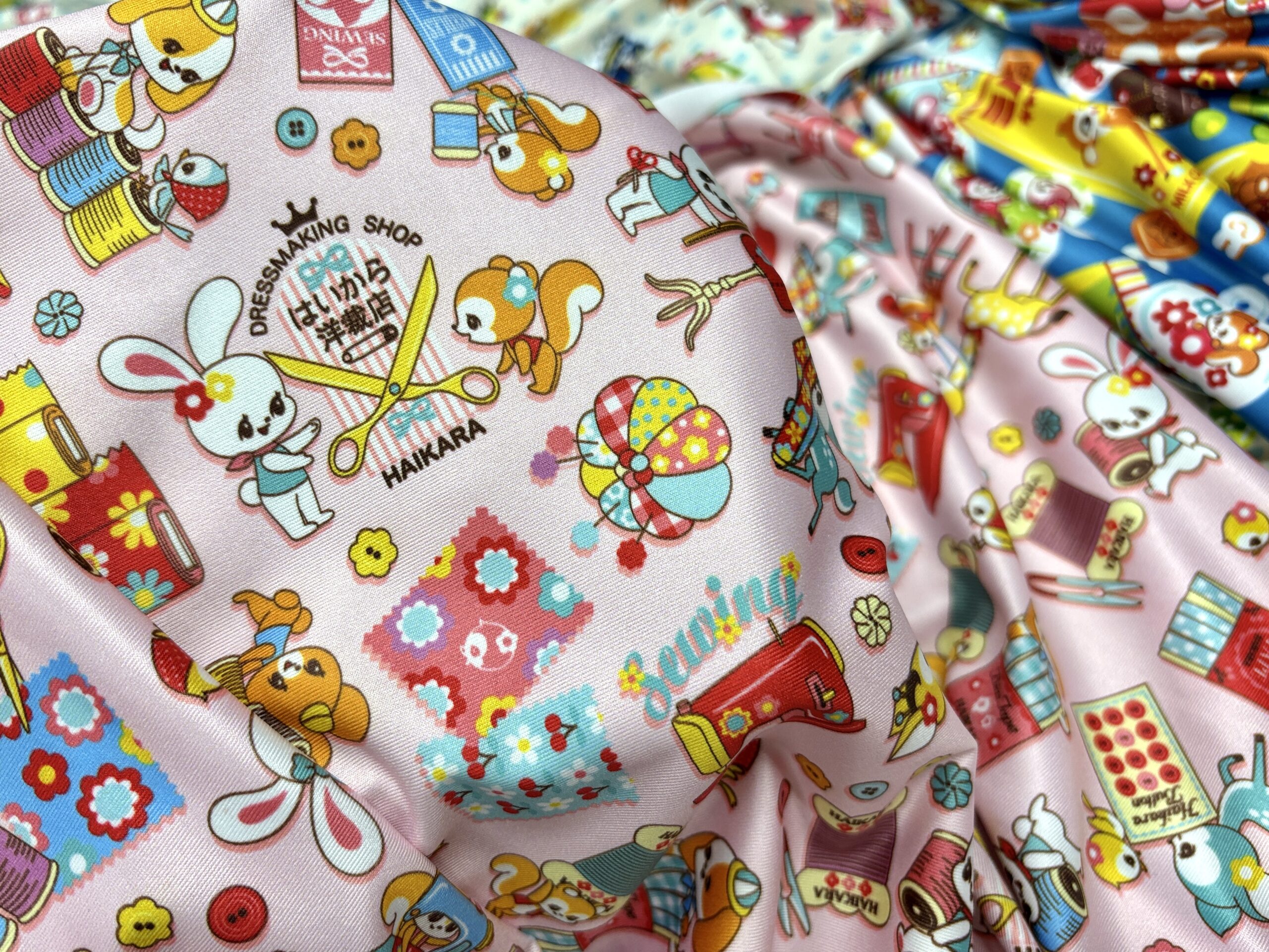 8月のブログでお伝えをしていました、名作レトロアニマルプリント「はいから横丁」シリーズのニット生地計画。