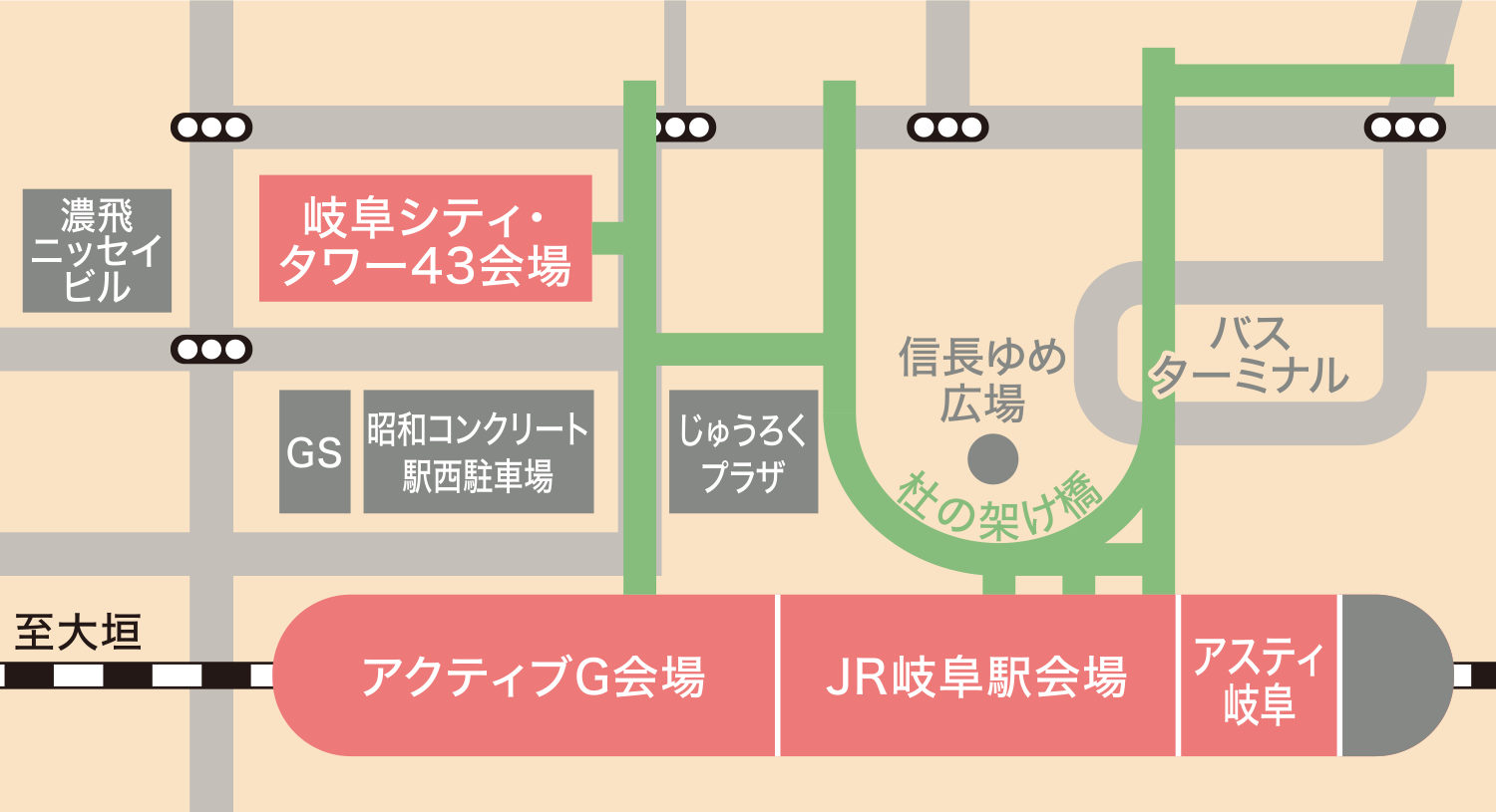 \ 駅から「岐阜シティ・タワー43会場」までの地図はこちらです /