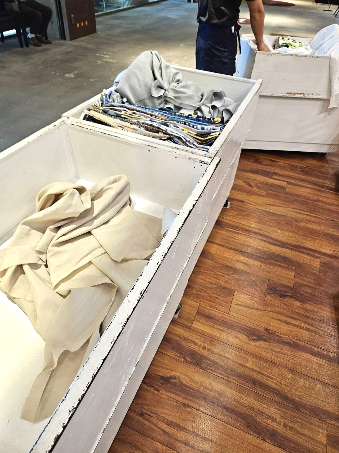 \ 明日の朝には、ここにお買い得ハギレがモリモリと盛られているはずです /