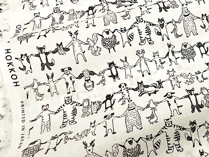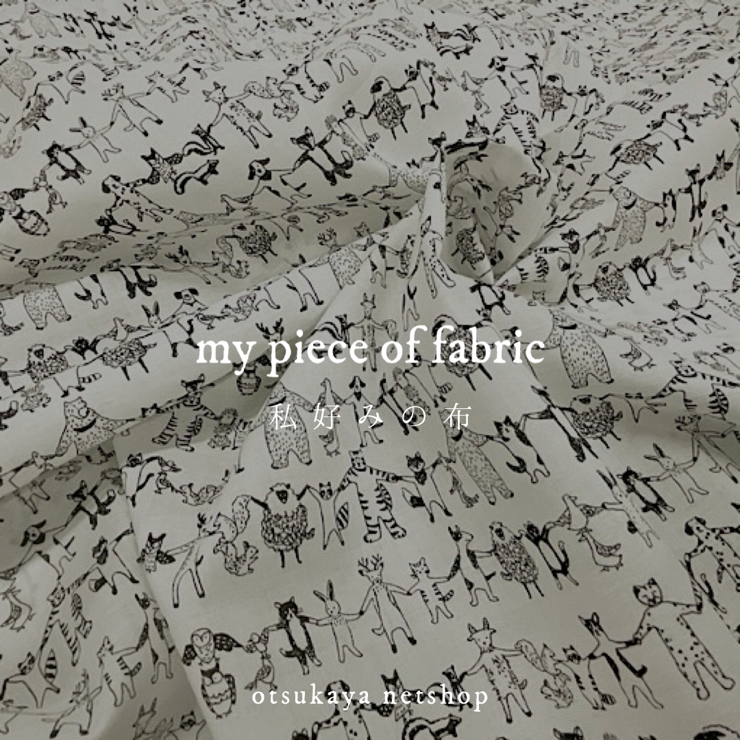 my piece of fabric 60ローンプリント「手つなぎアニマルズ」