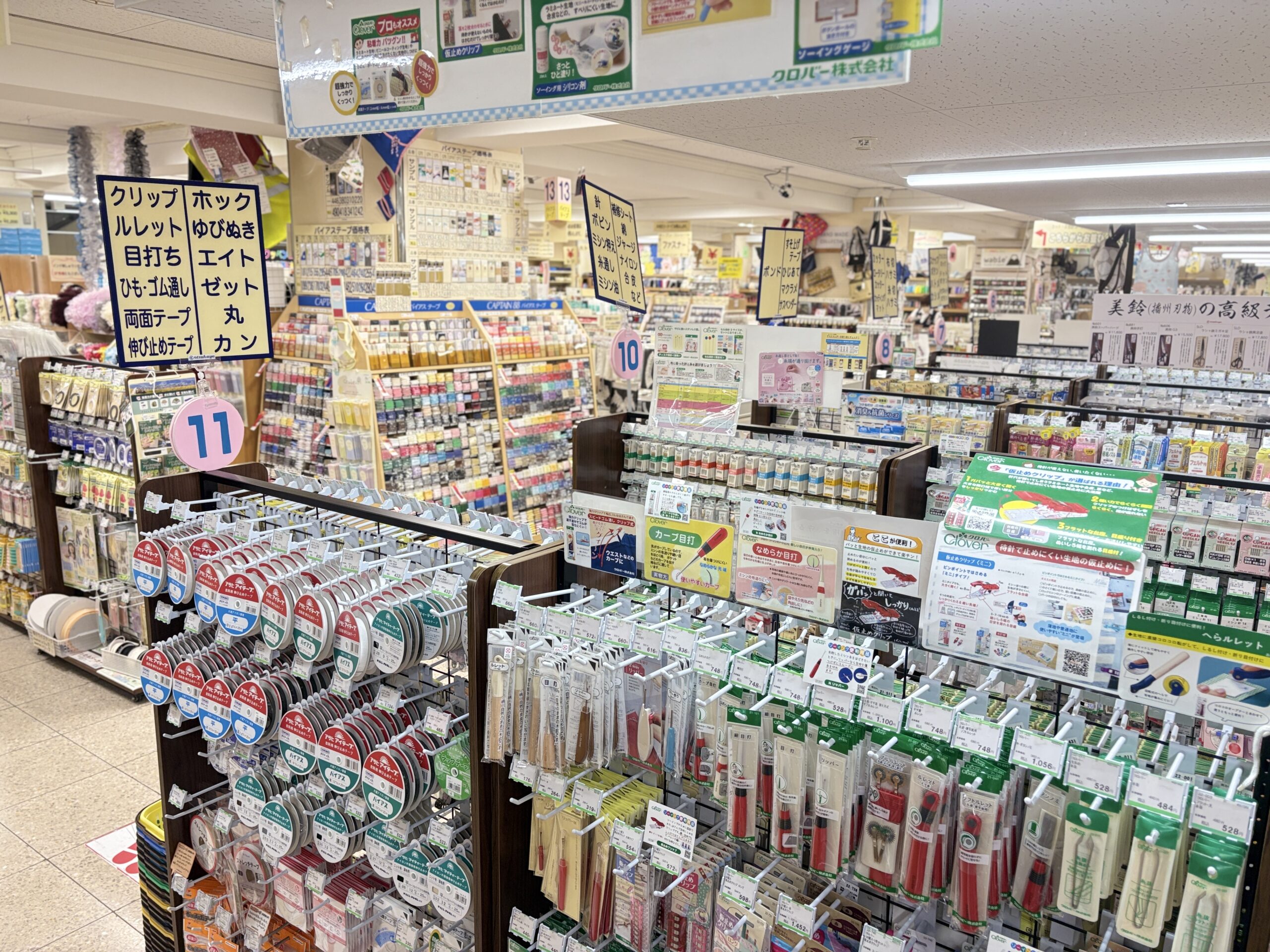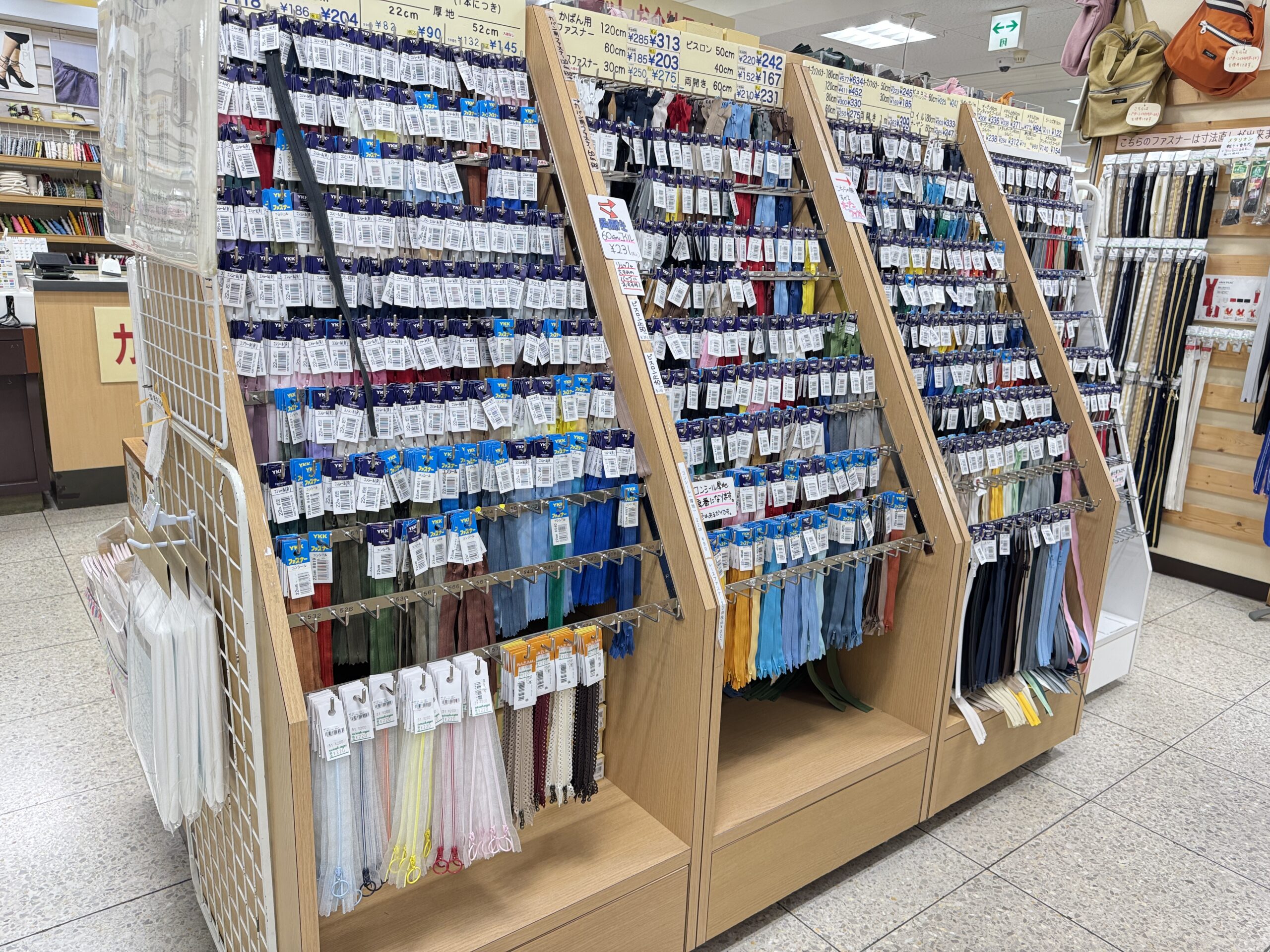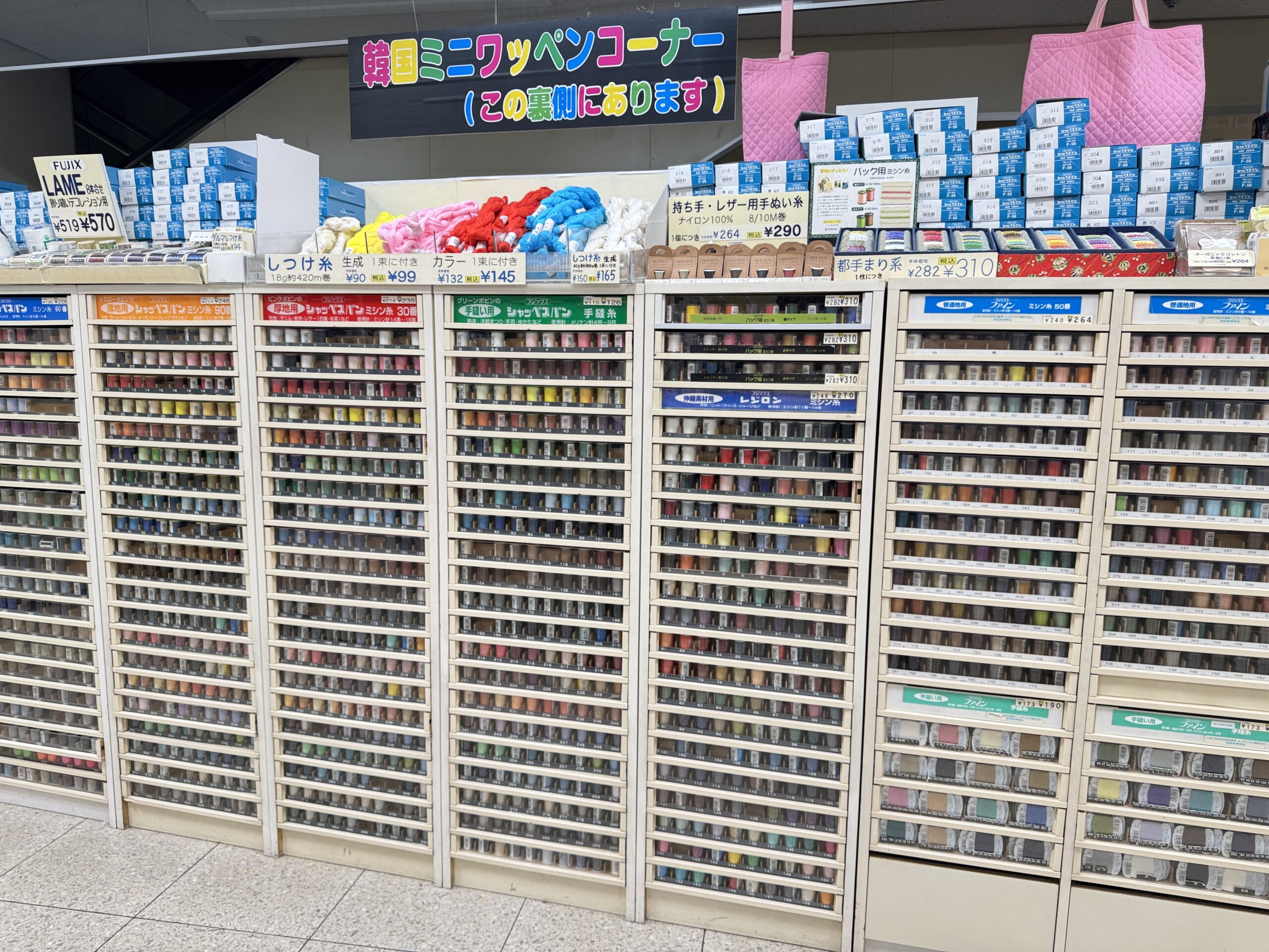 ソーイングにまつわるさまざまな資材を取り揃えた、大塚屋地下売場。