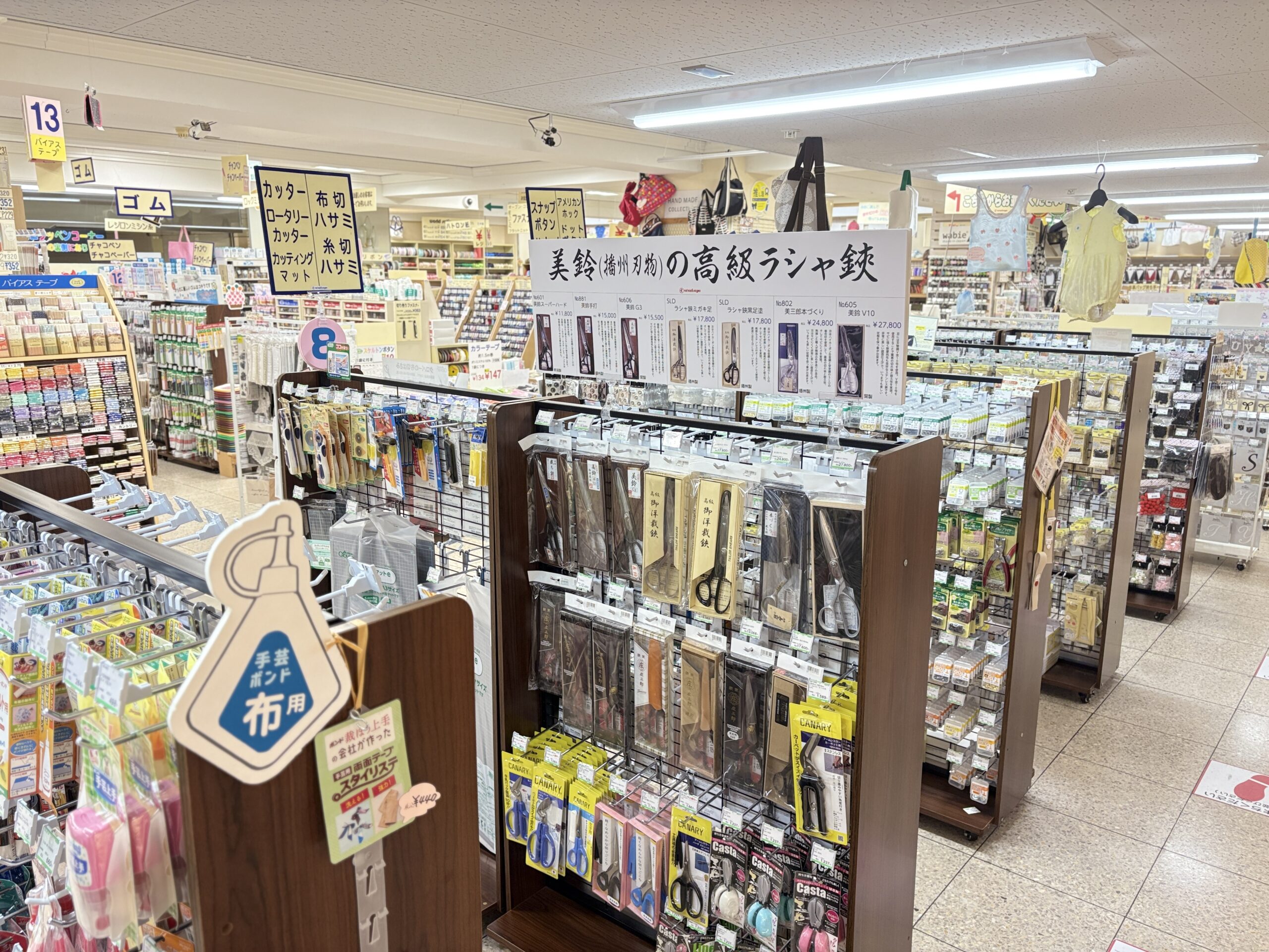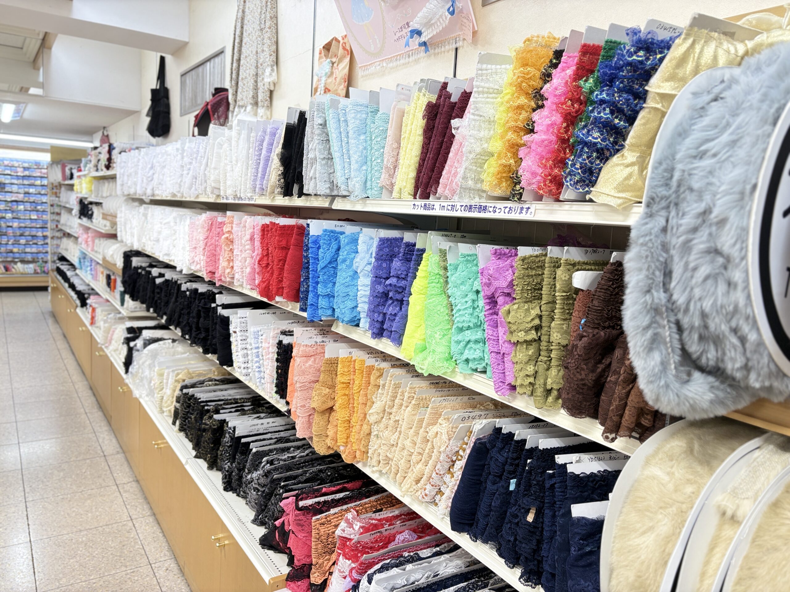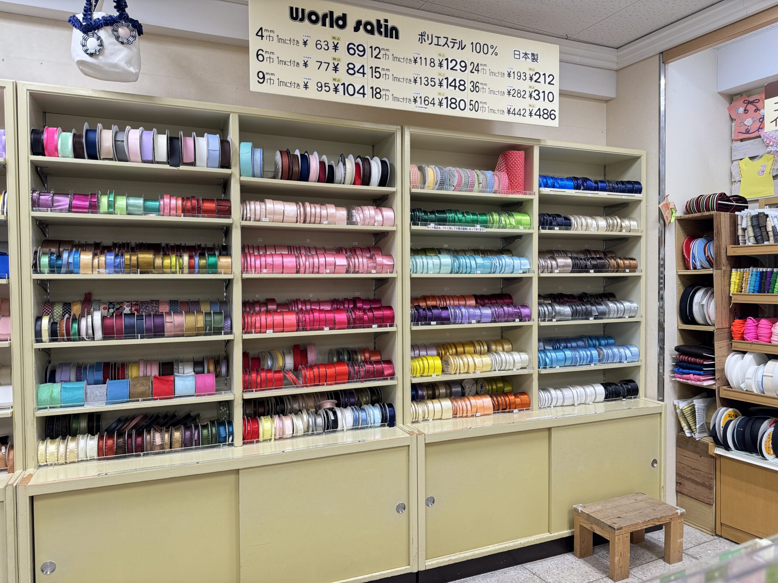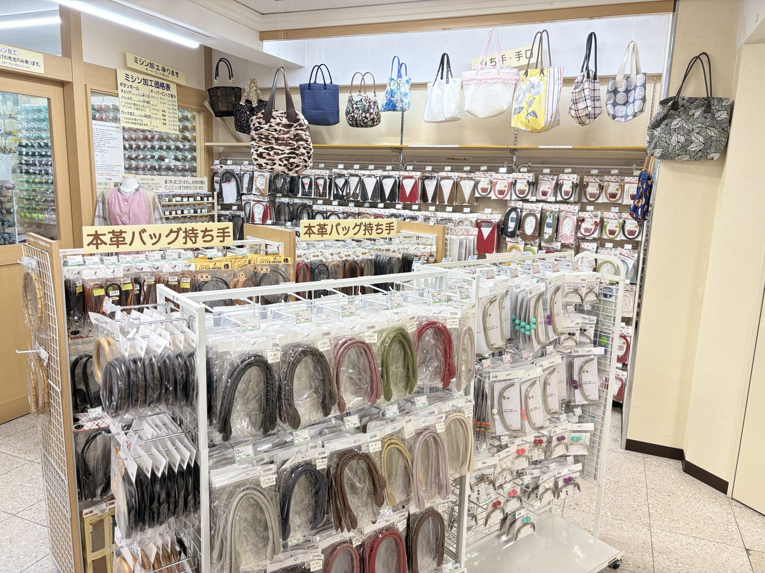 ソーイングにまつわるさまざまな資材を取り揃えた、大塚屋地下売場。