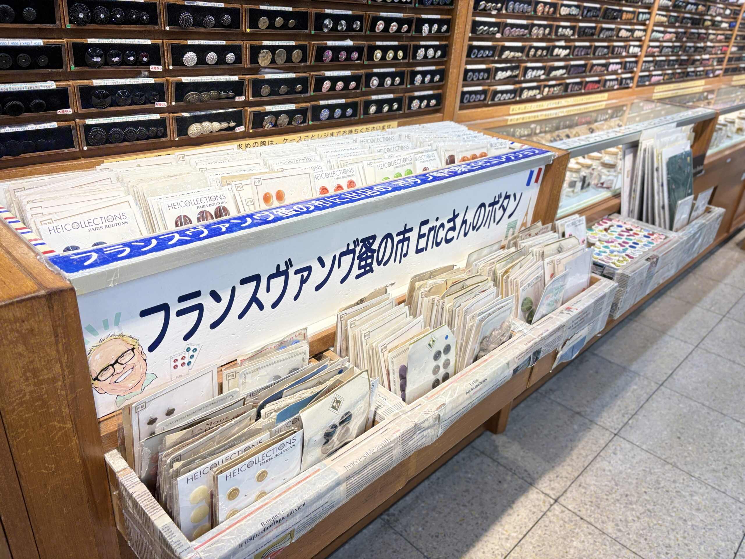 フランス直輸入の、ヴィンテージボタンも、博物館のような感覚で楽しめます。
