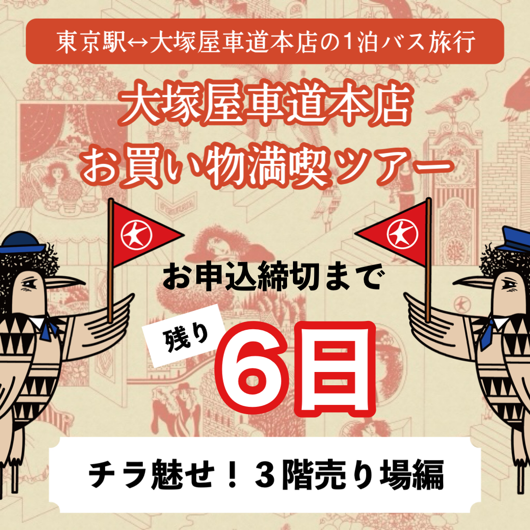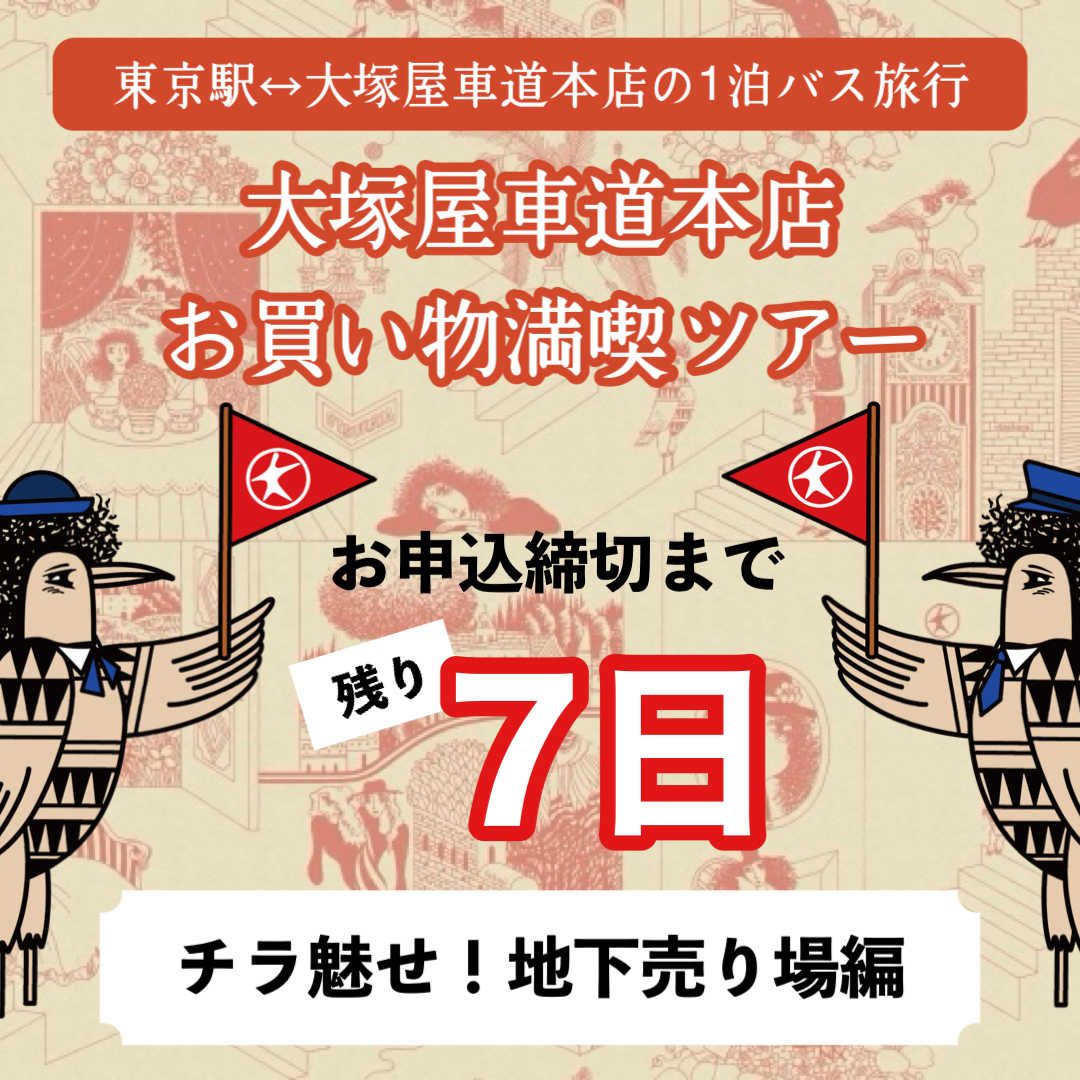 いよいよご予約お申込み締切まで残り7日となりました、東京駅⇔名古屋の1泊バスツアープラン「大塚屋車道本店お買い物満喫ツアー」。プランの詳細につきましては、こちらのブログにまとめています。