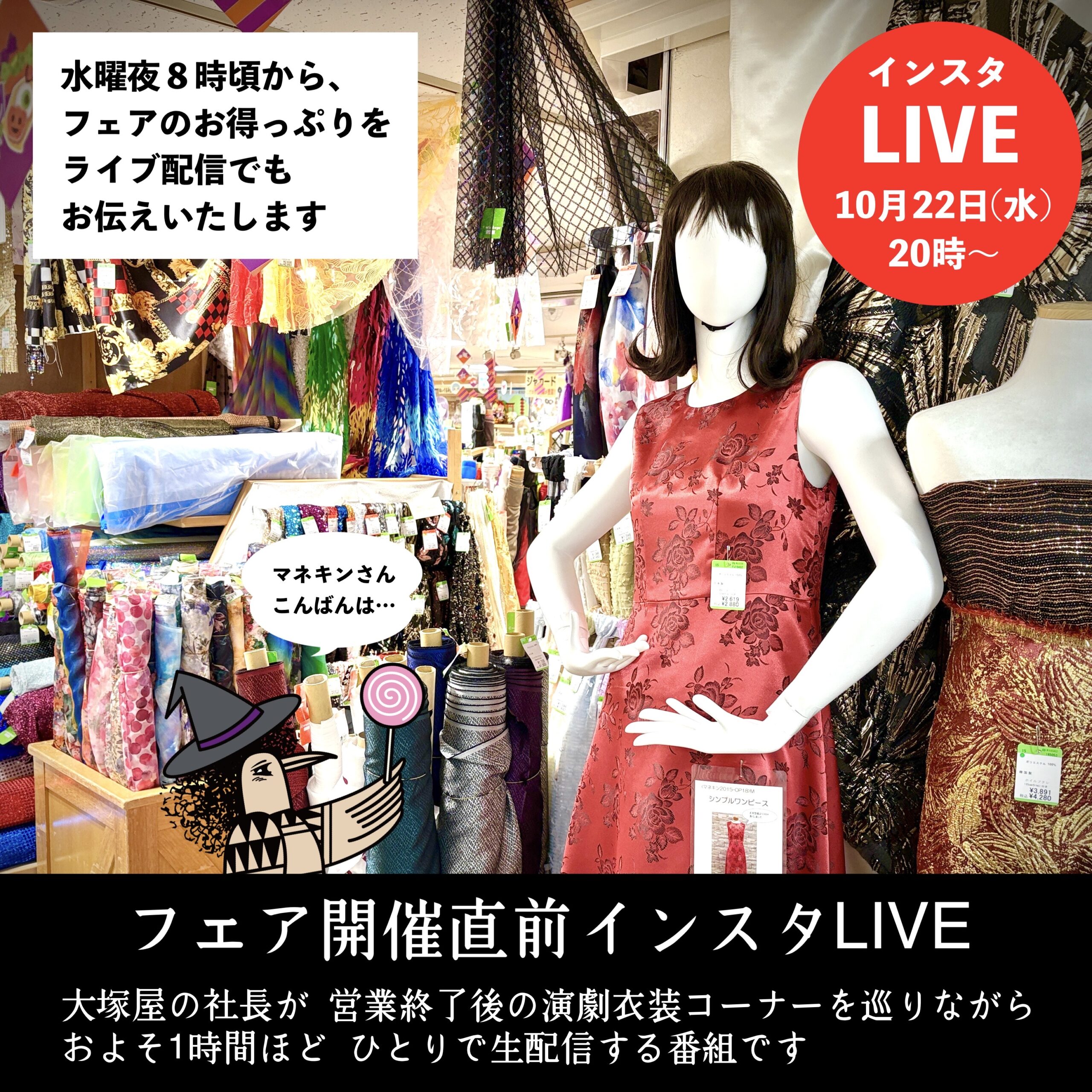 さらにさらに、フェア直前恒例の大塚屋社長のインスタライブも開催します。営業時間終了後の10月22日(水曜日)の午後8時頃から、大塚屋車道本店4階でフェアのラインナップ紹介を生配信いたします。