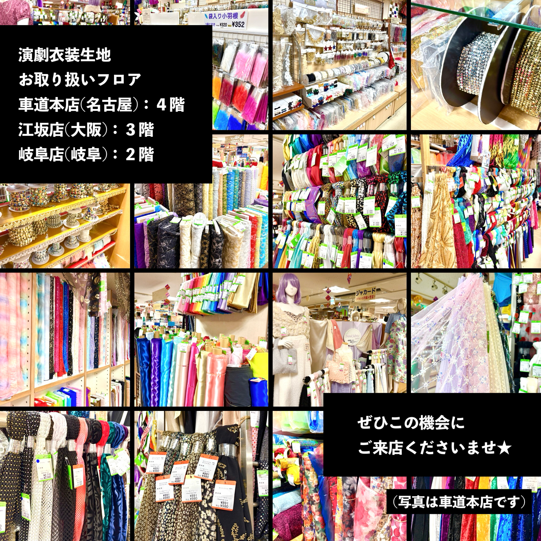 コスプレ服づくりや、キッズドレス制作、レオタードなど、個性的な衣装づくりにおすすめの演劇衣装コーナー。めったにないこのお買い得チャンスに、ぜひご来店くださいませ。