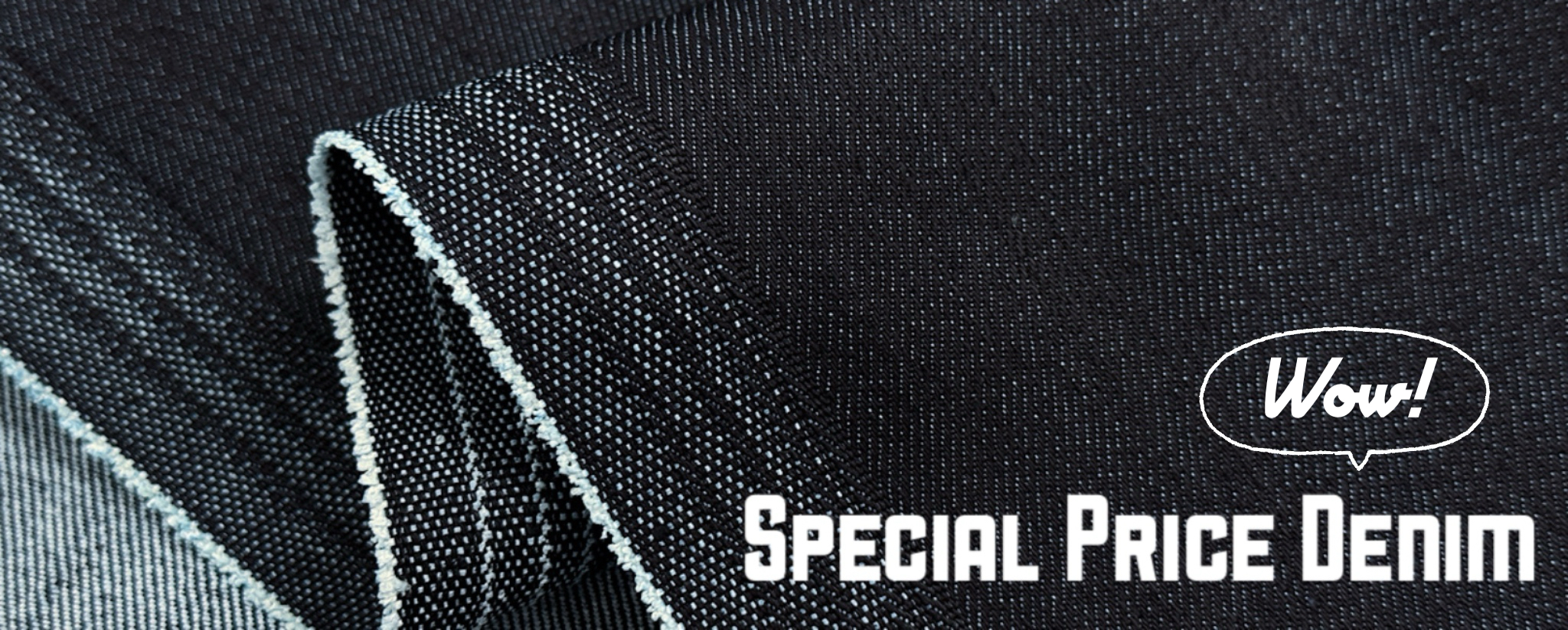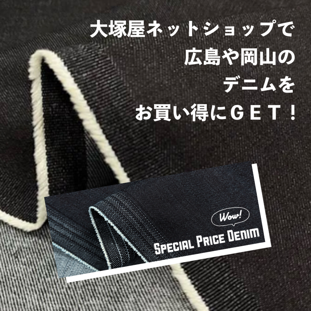 広島県や岡山県などの国産デニム生地を、とっておきプライスで販売中です。