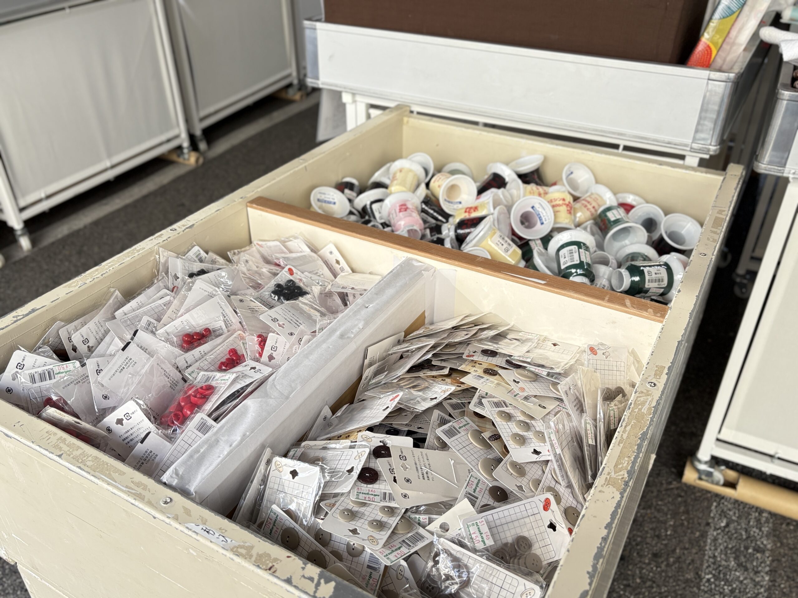 ――文章ばかりでは、「はぎれ大会」のスケール感はなかなかお伝えしきれません。そこで今回も、ついさっき撮影したばかりの大塚屋車道本店の「はぎれ大会」の準備中の写真を公開いたします。
