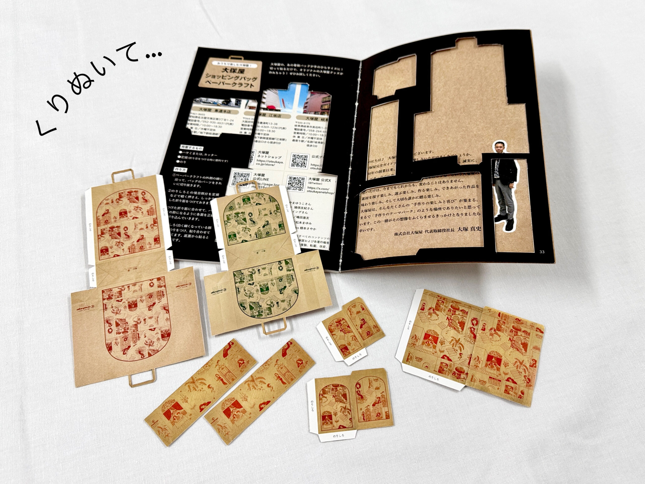 32ページ、33ページに大塚屋の包装紙アイテムが作れるクラフトページが収録されています。