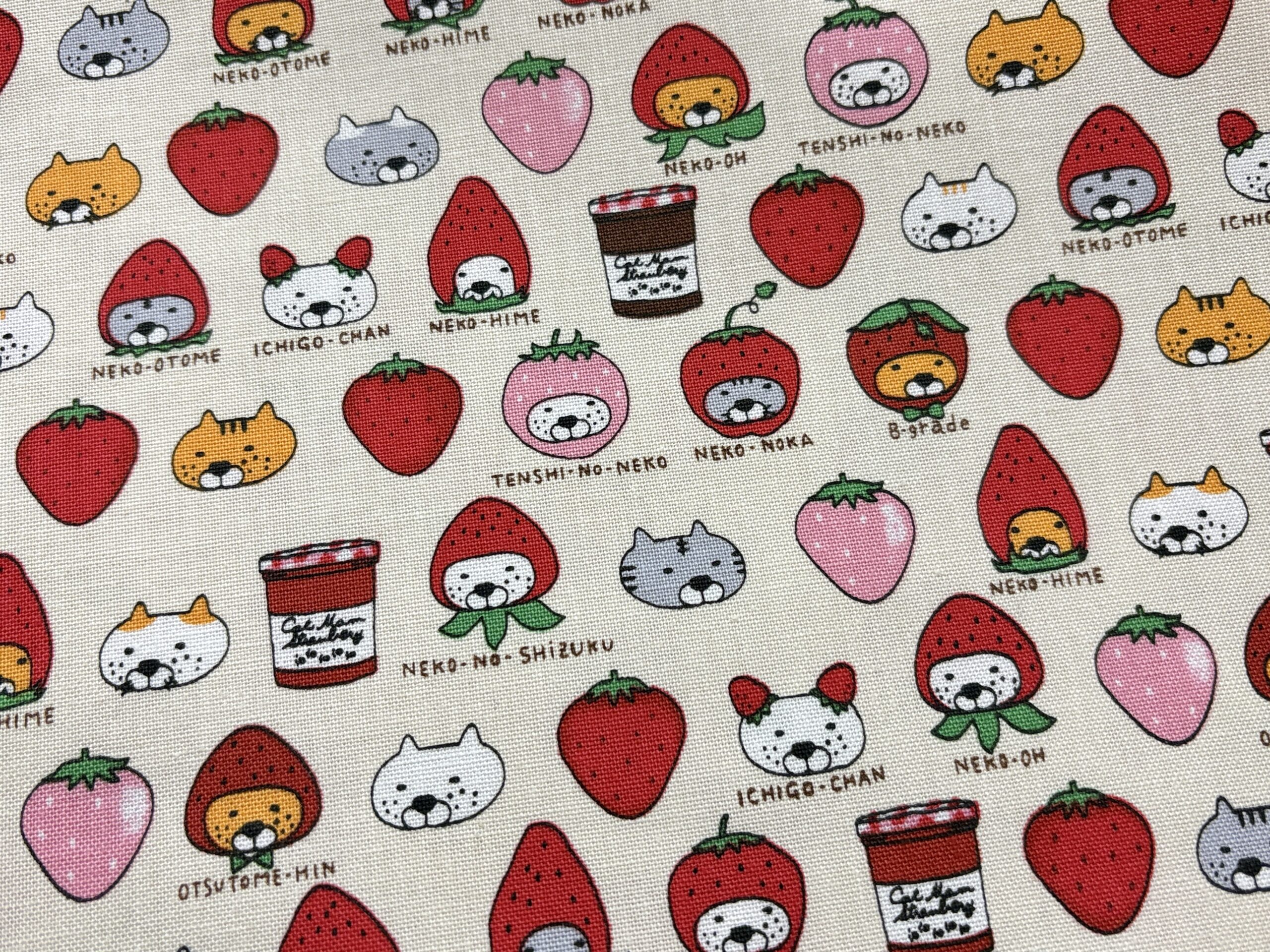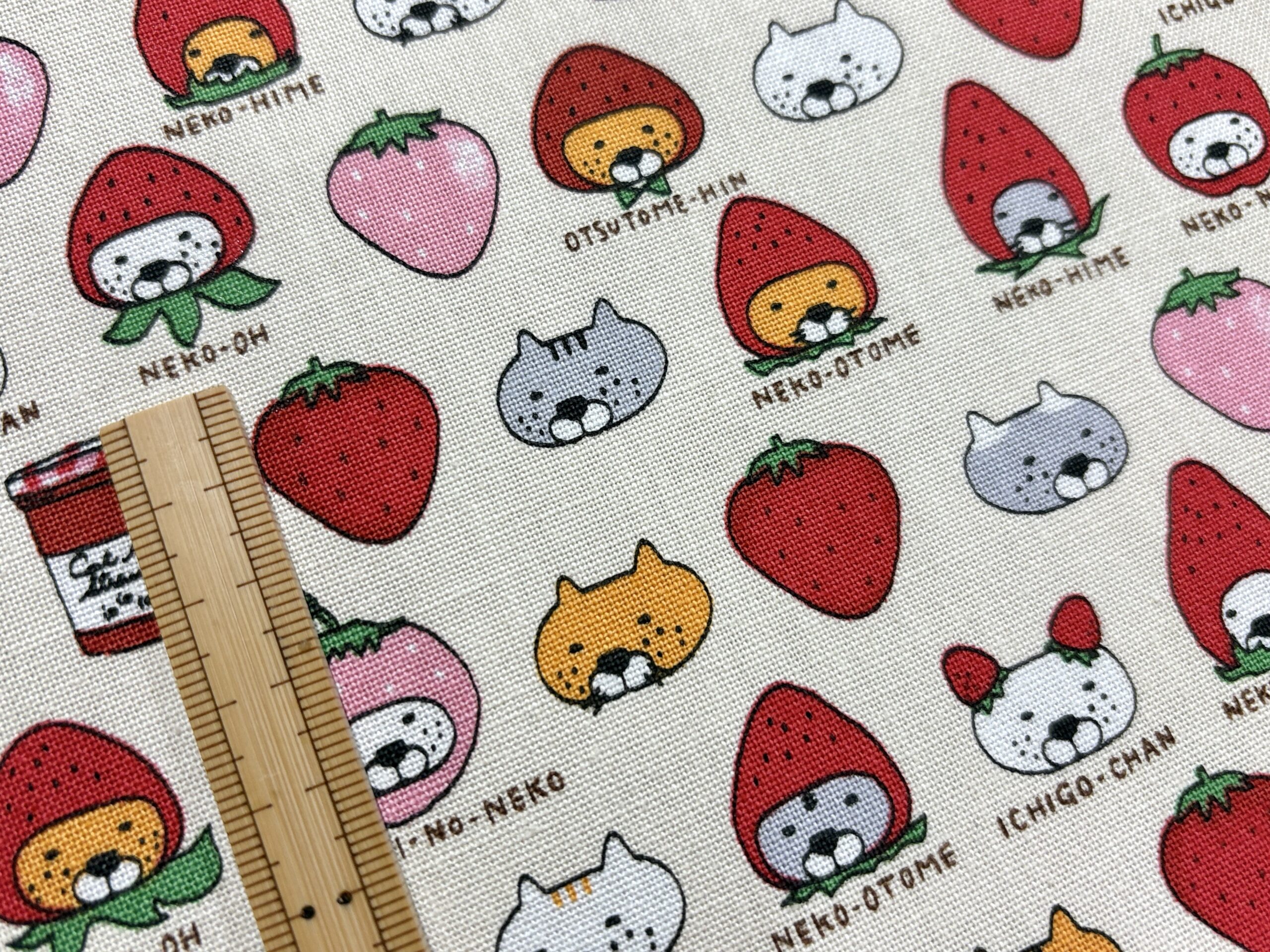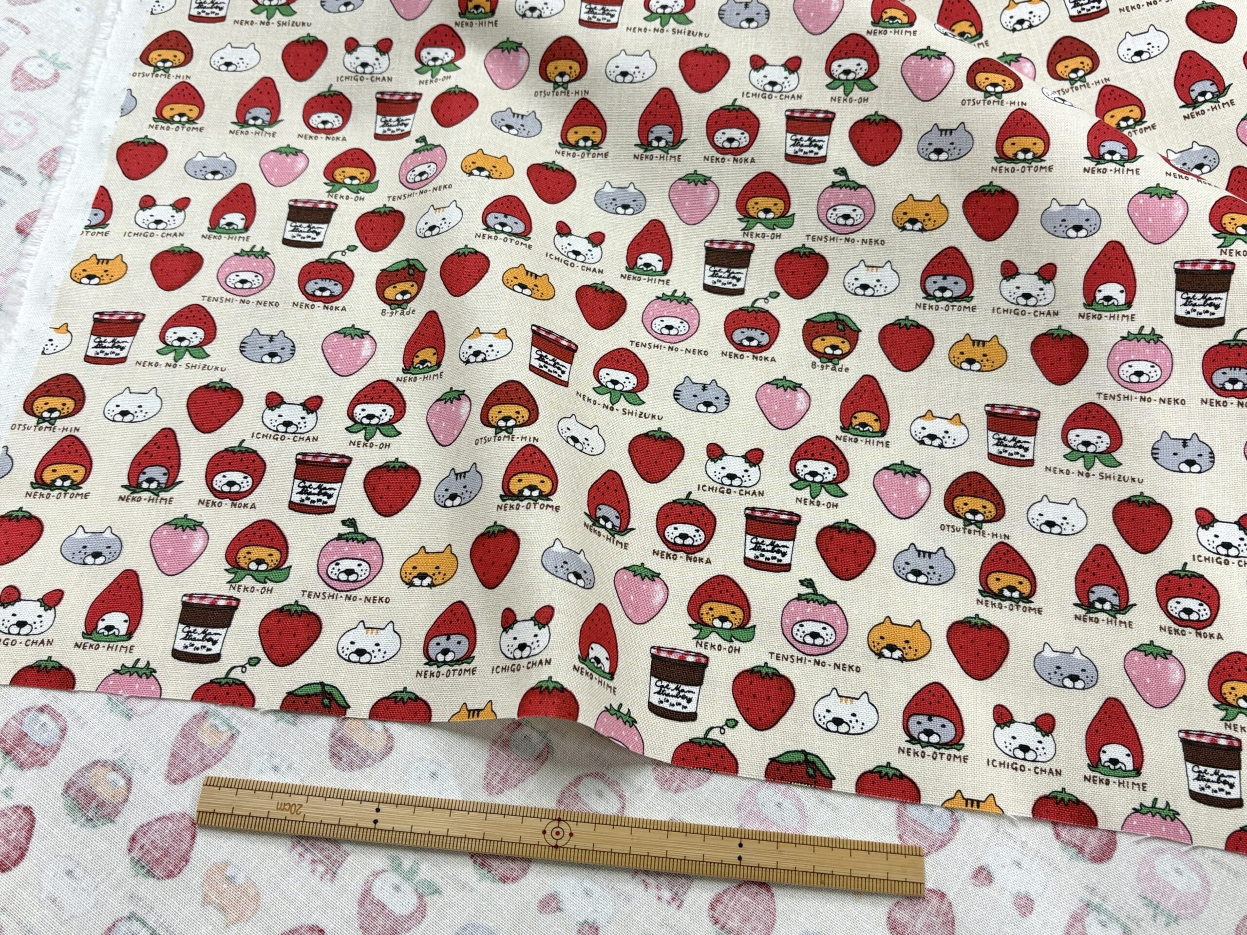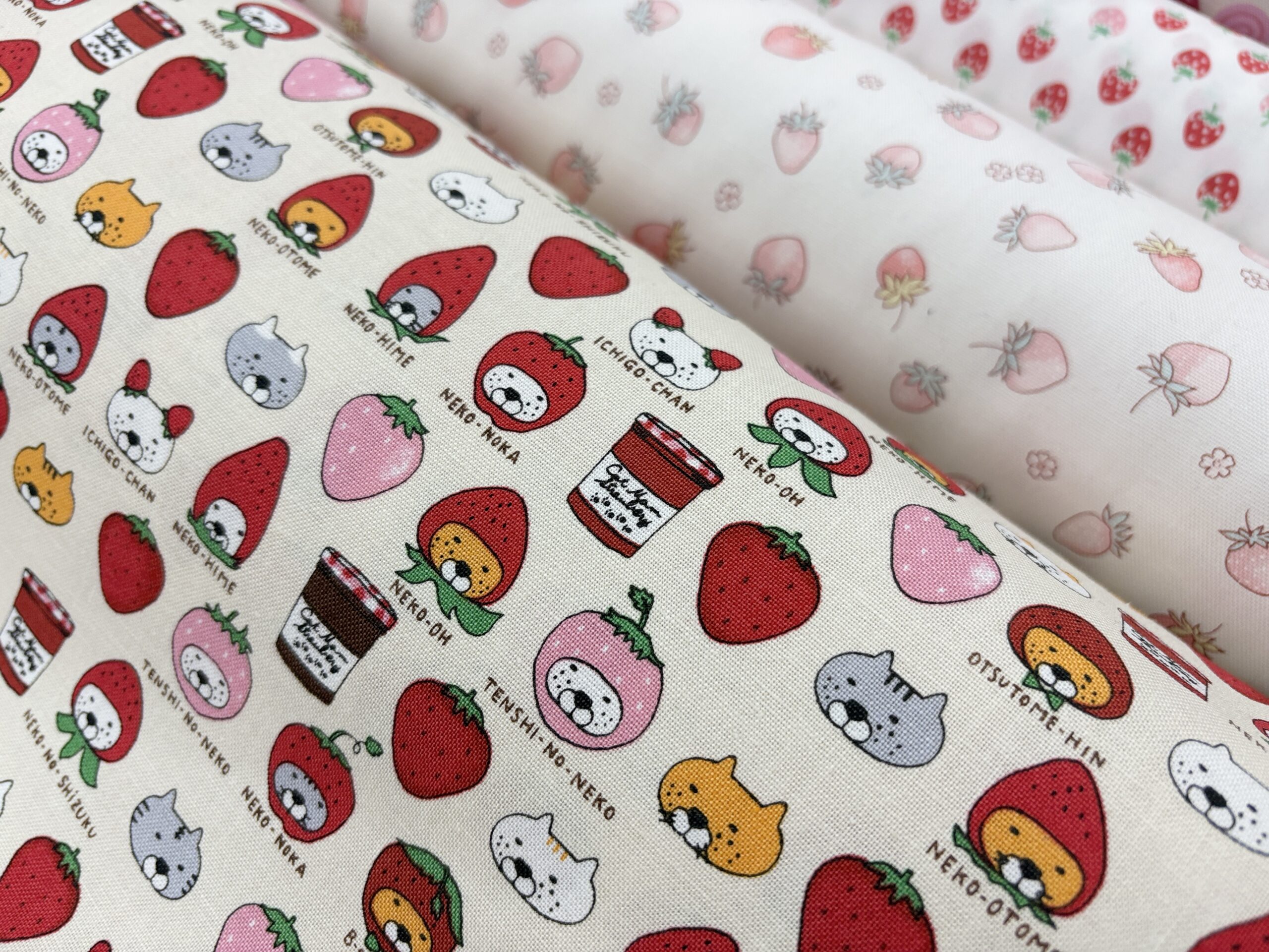 そこに新しく、なんとも個性豊かな「猫×苺」の布が登場いたしました。