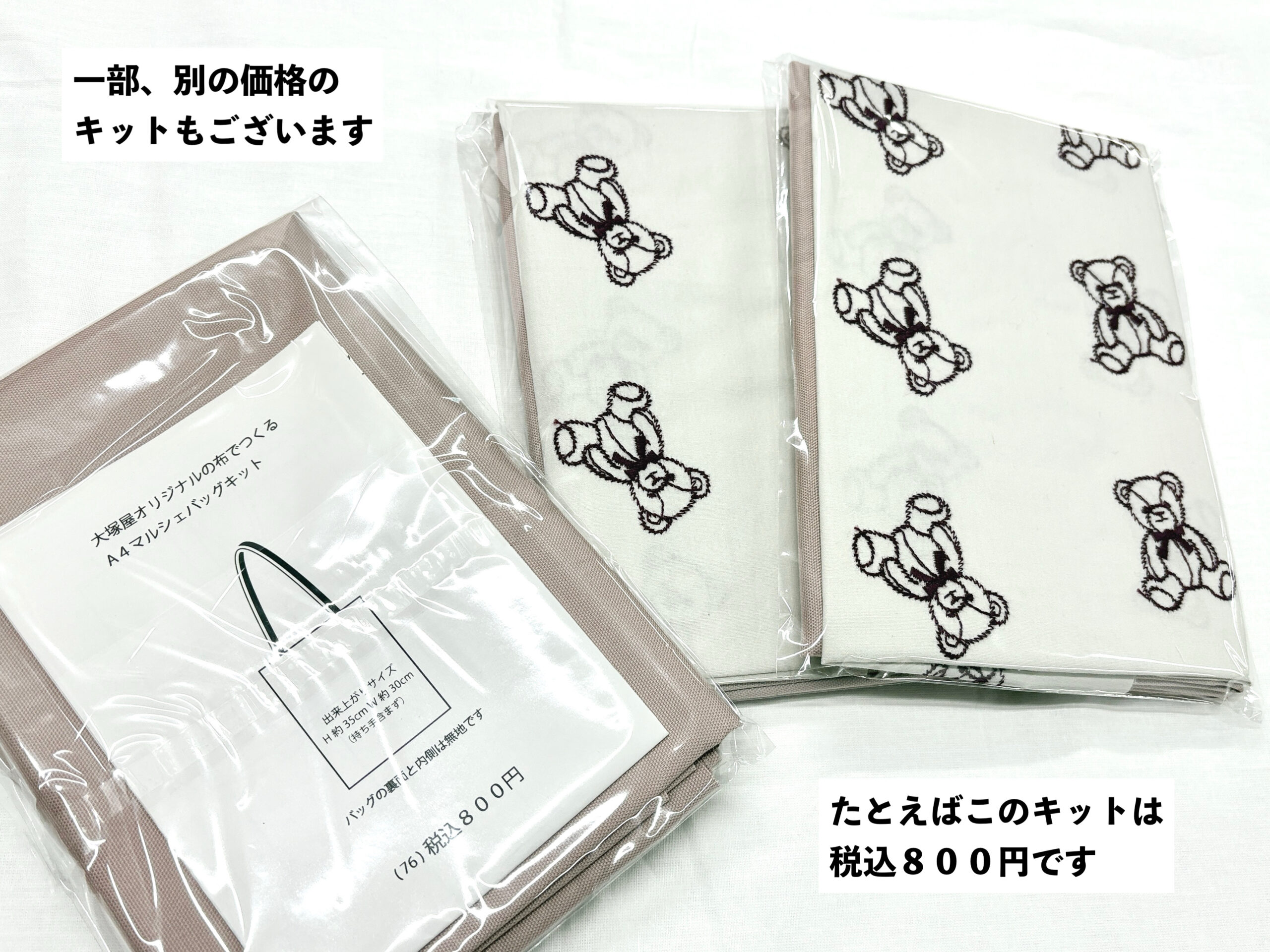 先ほどの2枚の写真の分のキットはすべて税込500円です。以下のように、ごく一部、例外のお値段のキットもございます。