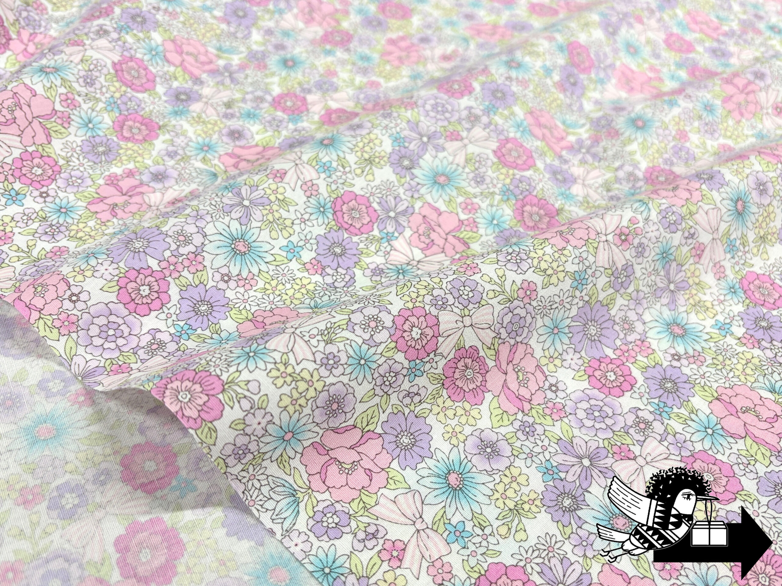 リボンと小花のブロードプリント