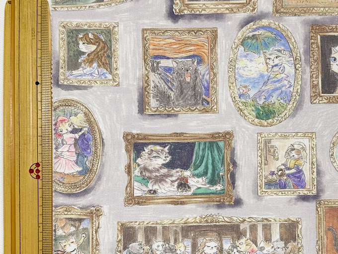 先月から今月にかけての大ヒットプリント生地といえば、『Hoyoka』Cats Art Museumのシーチングプリントが挙げられます。
