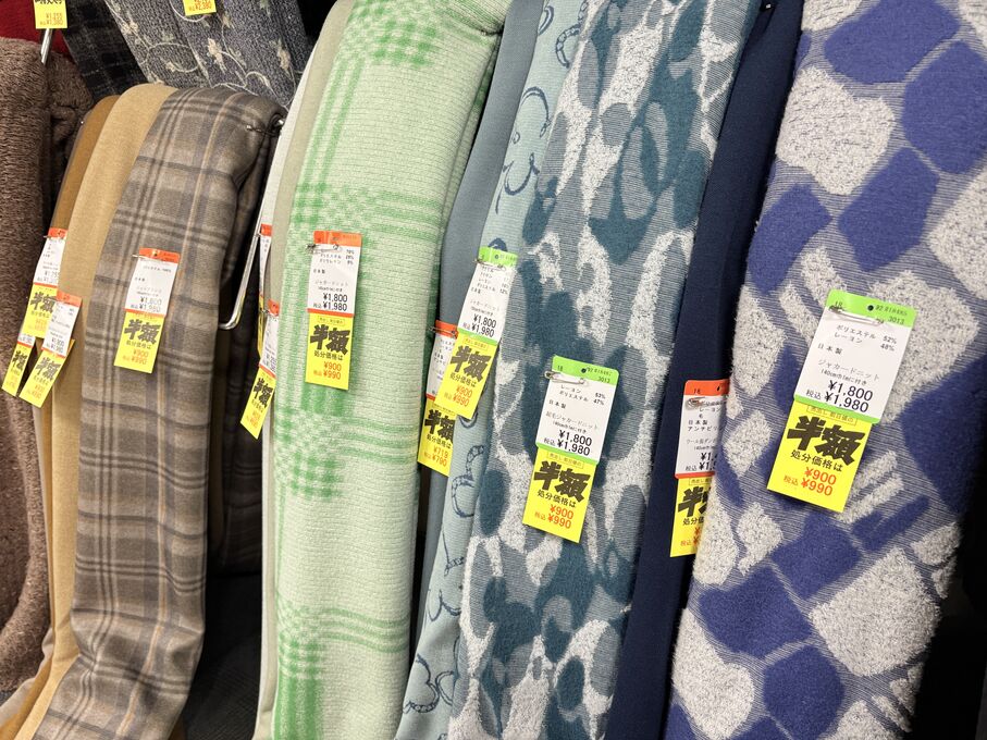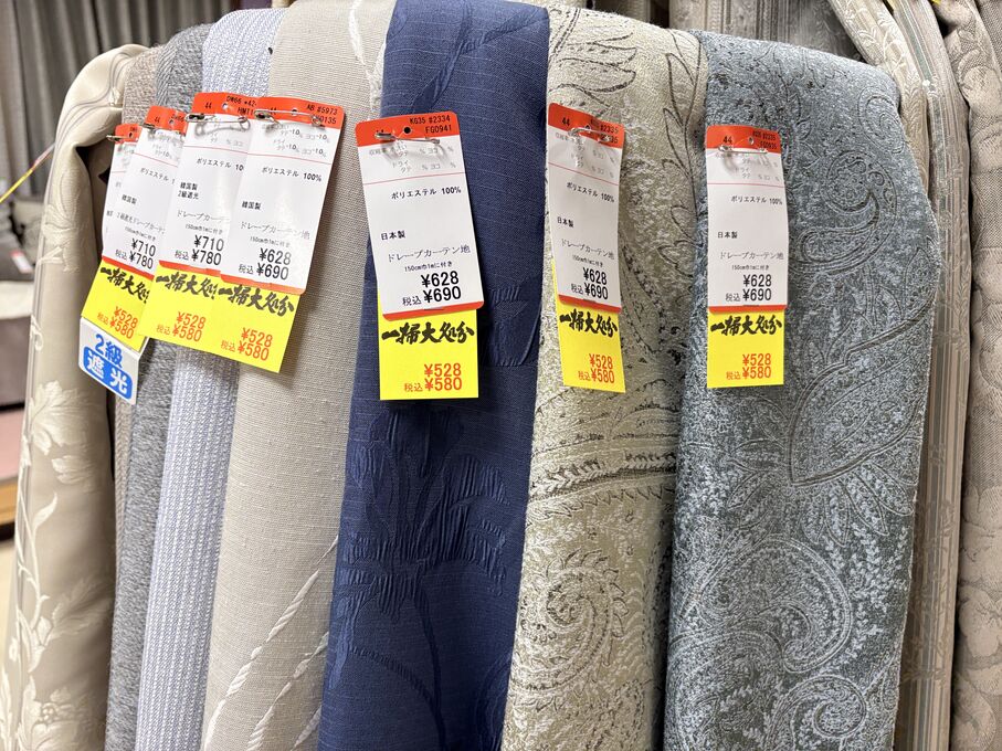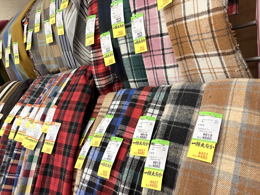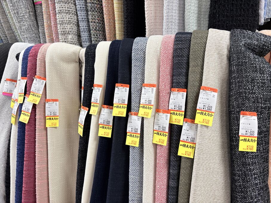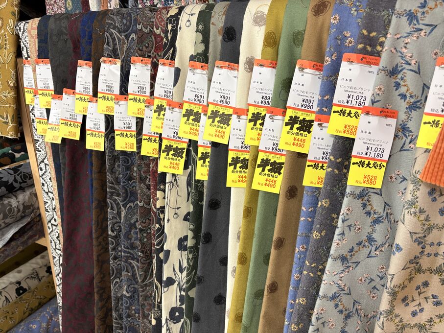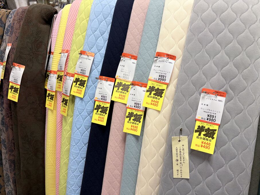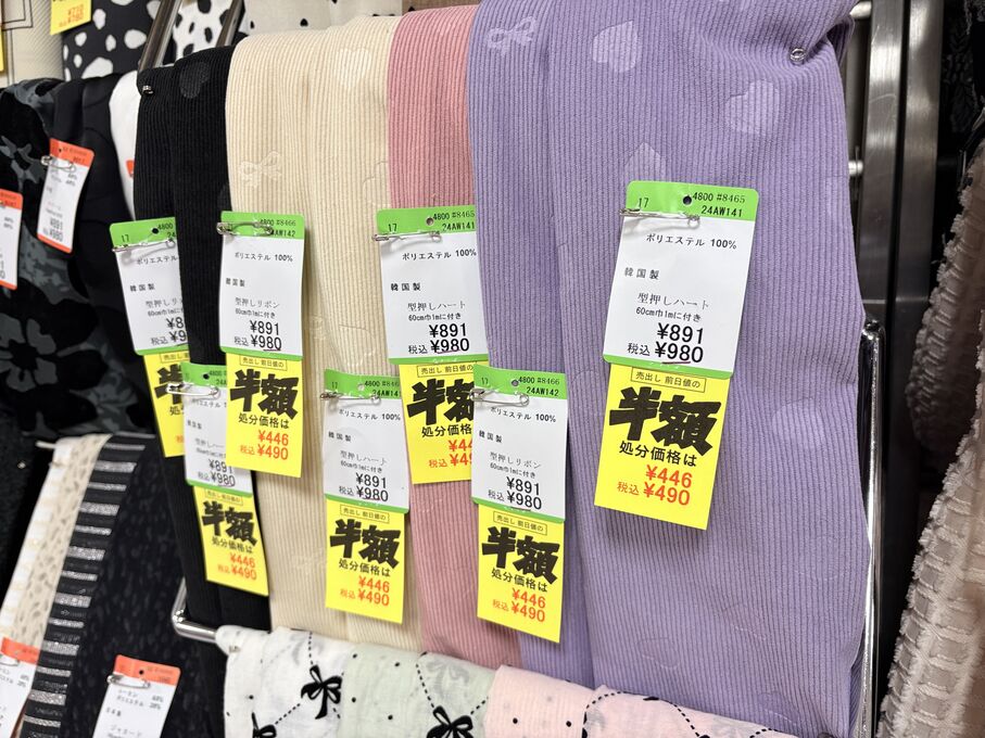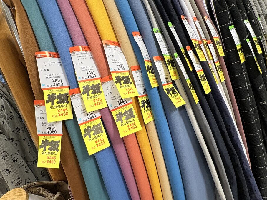 ぬのにちは♪大塚屋でございます。2026年1月30日~2月4日の6日間、大塚屋車道本店・江坂店・岐阜店で「冬の布地一掃大処分」のバーゲンセールを開催いたします。セール商品には、このように通常の値札の下に「黄色い特価札」を添付します。さらにくわしくは、開催直前に大塚屋実店舗のホームページ()のお知らせ欄に記載予定です。また、開催前日の1月29日(木)は全店舗定休日となりますが、以下の時間で商品紹介ライブの配信を予定しています。■2026年1月29日(木) 夜19時頃~(1時間半程度)大塚屋車道本店の店内で、弊社代表の大塚がお買い得商品を探索!生配信をしながら、4階 → 3階 → 2階 → 1階