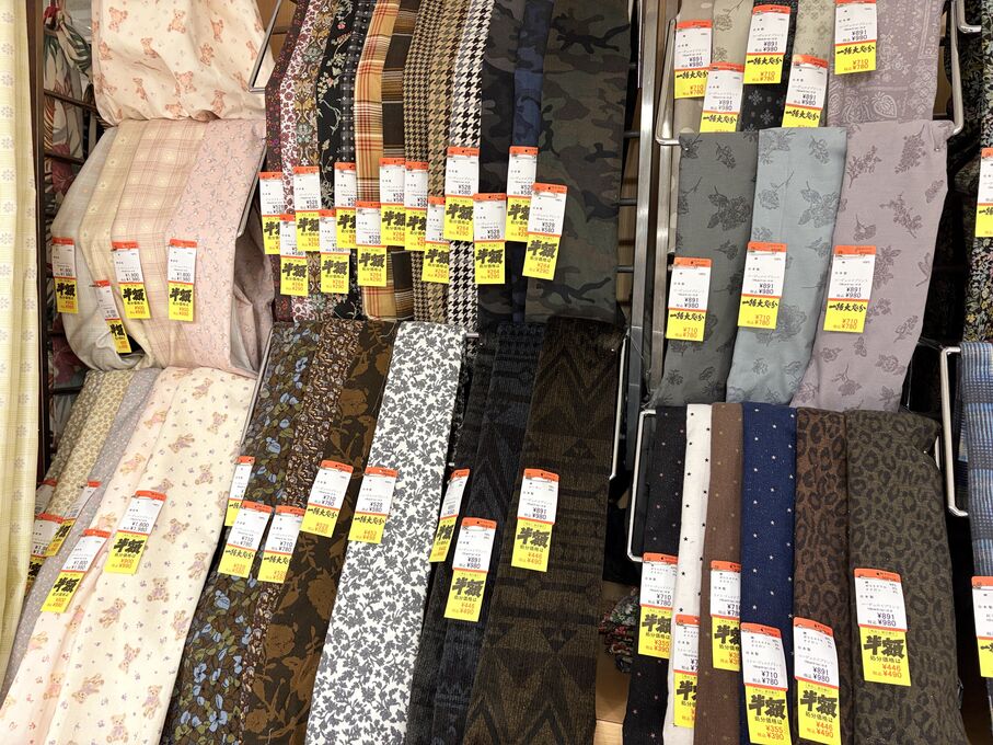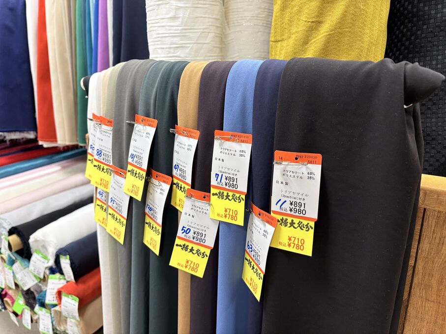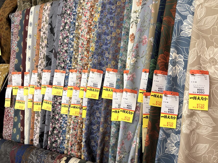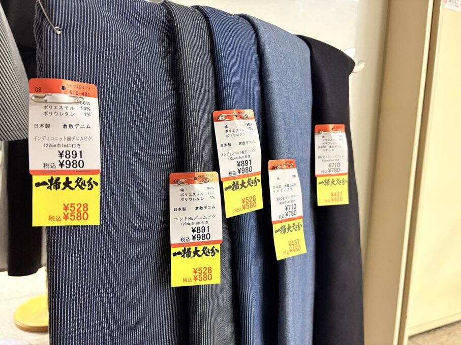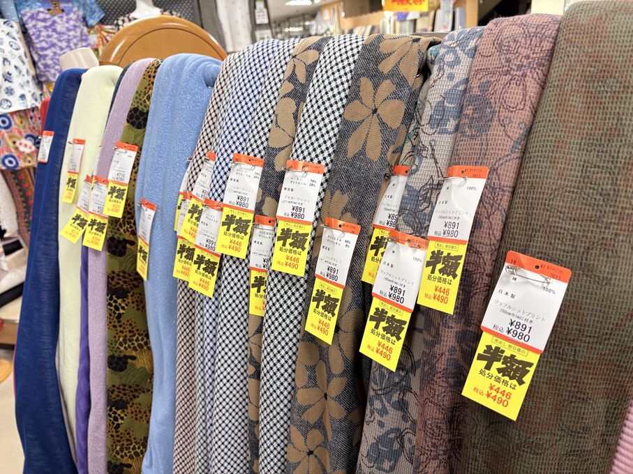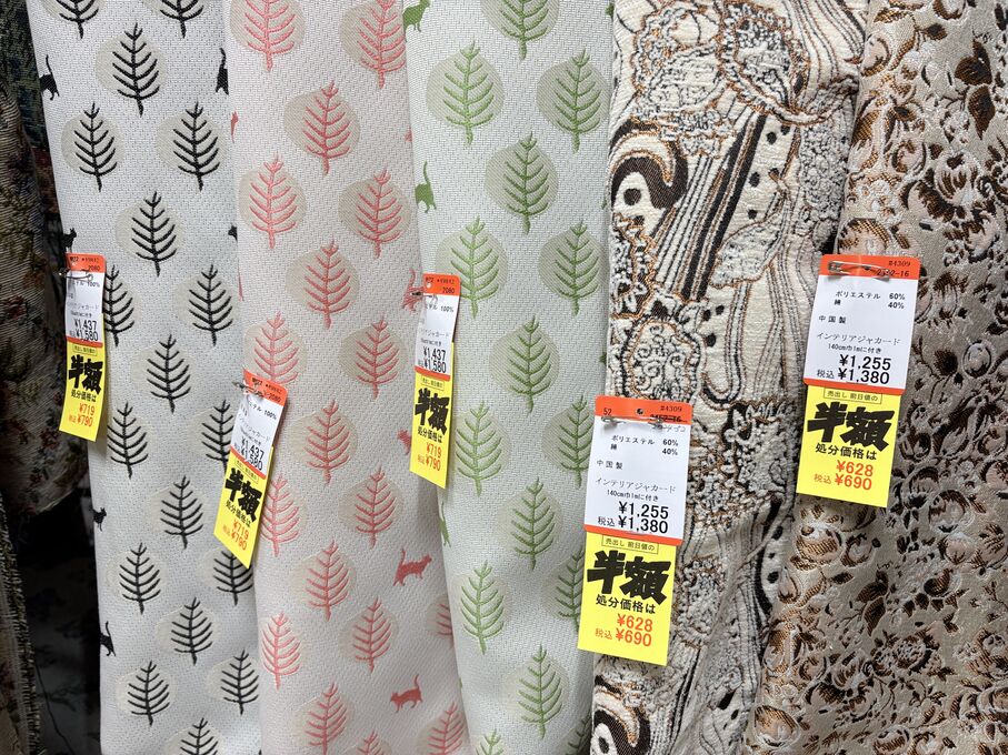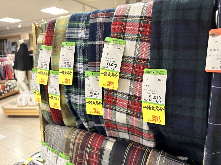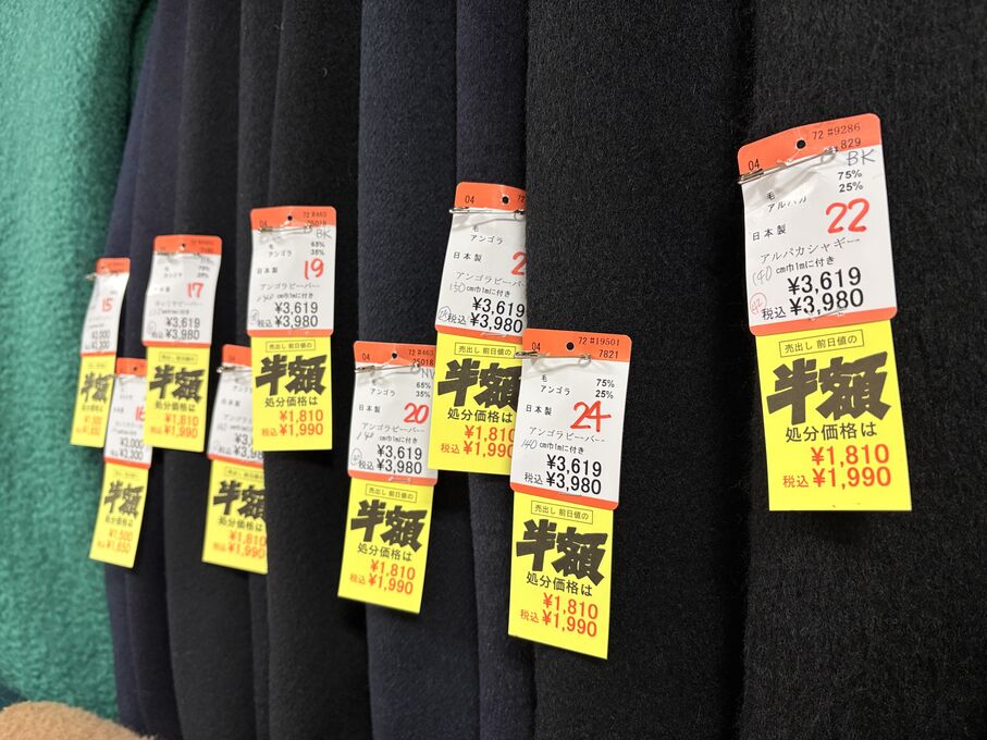 ぬのにちは♪大塚屋でございます。2026年1月30日~2月4日の6日間、大塚屋車道本店・江坂店・岐阜店で「冬の布地一掃大処分」のバーゲンセールを開催いたします。セール商品には、このように通常の値札の下に「黄色い特価札」を添付します。さらにくわしくは、開催直前に大塚屋実店舗のホームページ()のお知らせ欄に記載予定です。また、開催前日の1月29日(木)は全店舗定休日となりますが、以下の時間で商品紹介ライブの配信を予定しています。■2026年1月29日(木) 夜19時頃~(1時間半程度)大塚屋車道本店の店内で、弊社代表の大塚がお買い得商品を探索!生配信をしながら、4階 → 3階 → 2階 → 1階