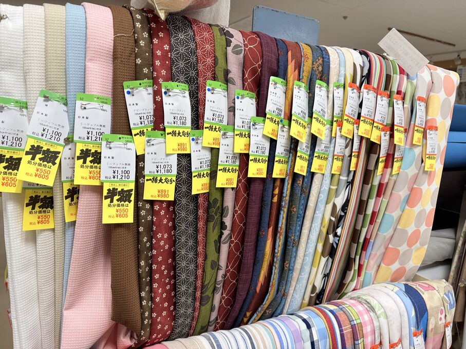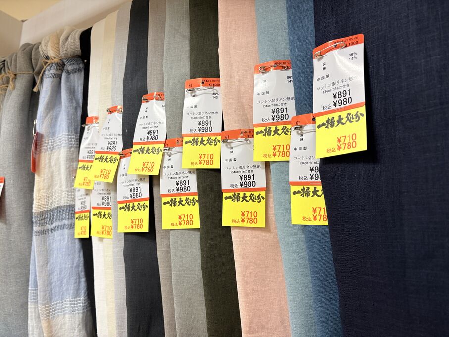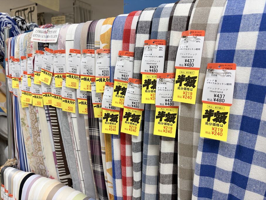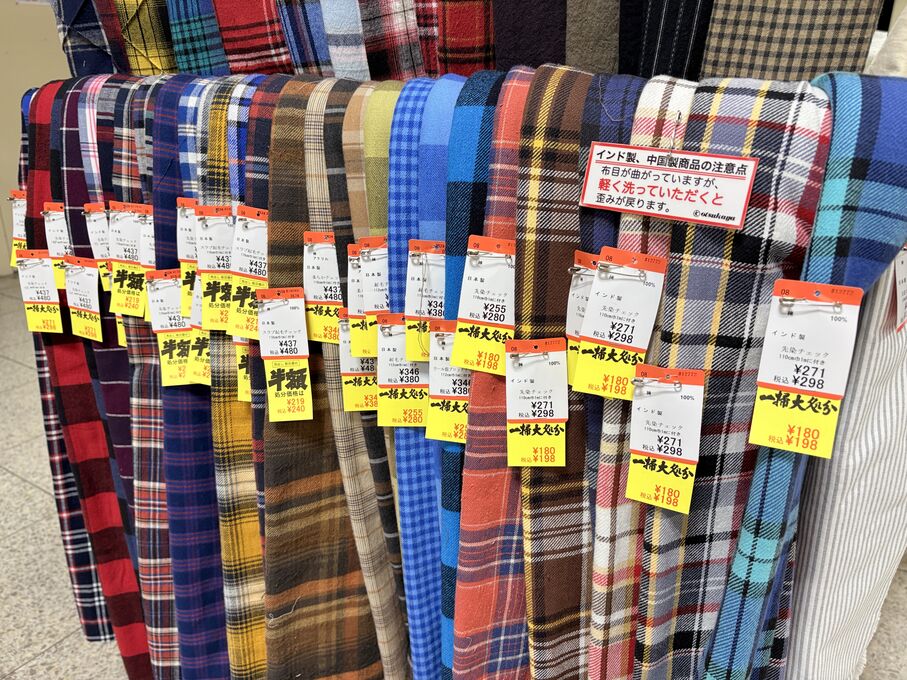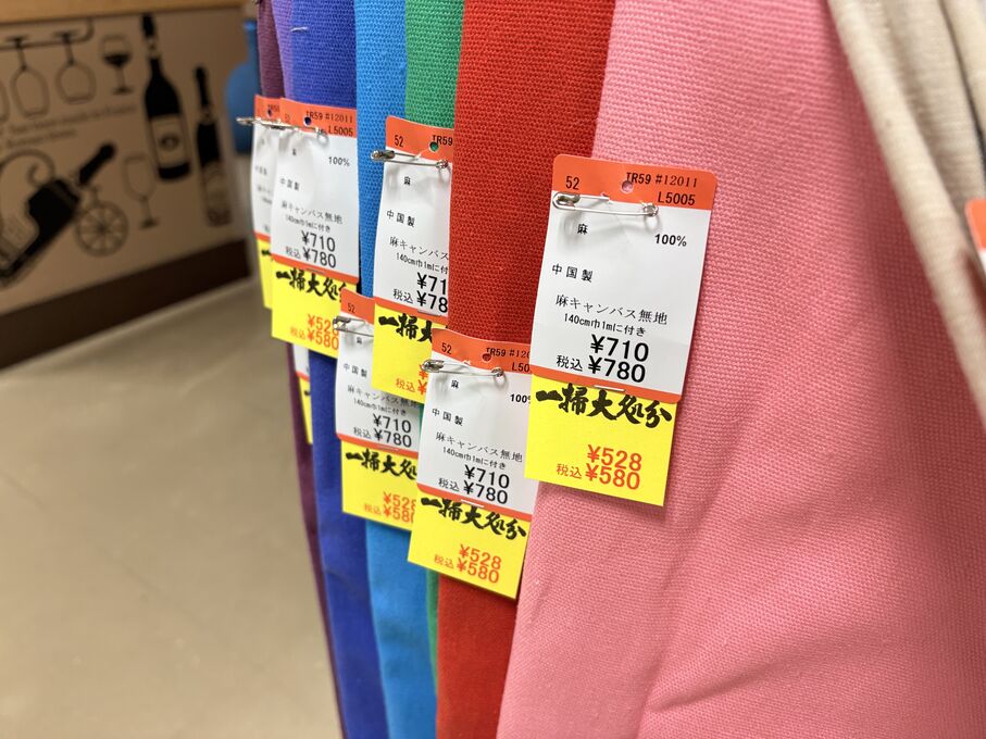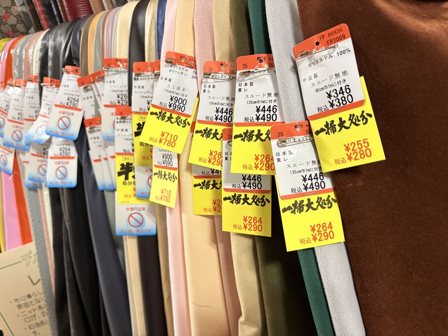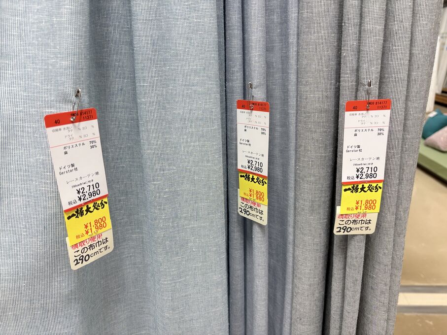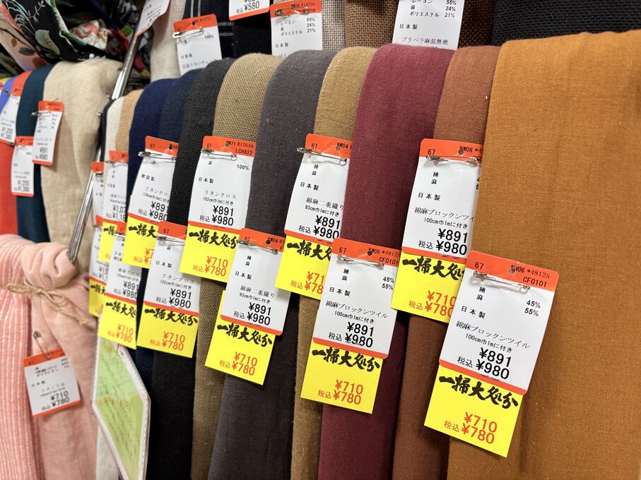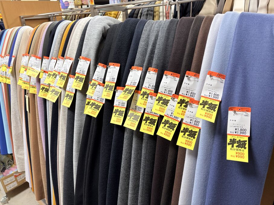 ぬのにちは♪大塚屋でございます。2026年1月30日~2月4日の6日間、大塚屋車道本店・江坂店・岐阜店で「冬の布地一掃大処分」のバーゲンセールを開催いたします。セール商品には、このように通常の値札の下に「黄色い特価札」を添付します。さらにくわしくは、開催直前に大塚屋実店舗のホームページ()のお知らせ欄に記載予定です。また、開催前日の1月29日(木)は全店舗定休日となりますが、以下の時間で商品紹介ライブの配信を予定しています。■2026年1月29日(木) 夜19時頃~(1時間半程度)大塚屋車道本店の店内で、弊社代表の大塚がお買い得商品を探索!生配信をしながら、4階 → 3階 → 2階 → 1階