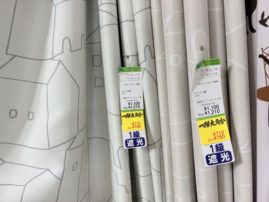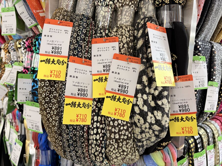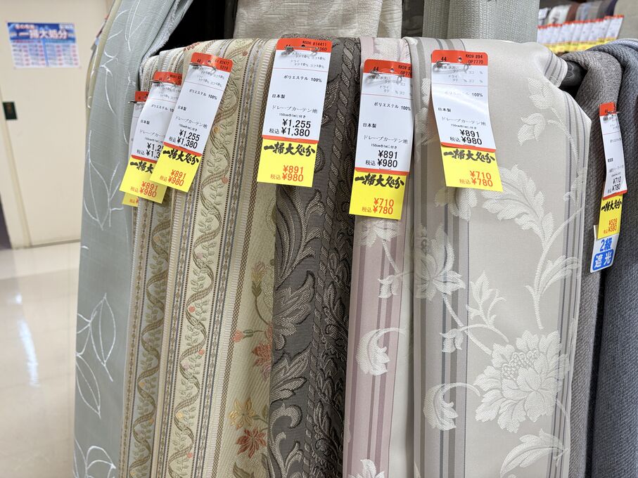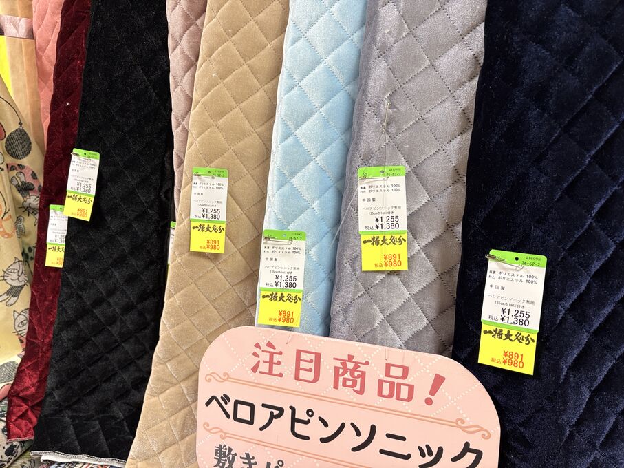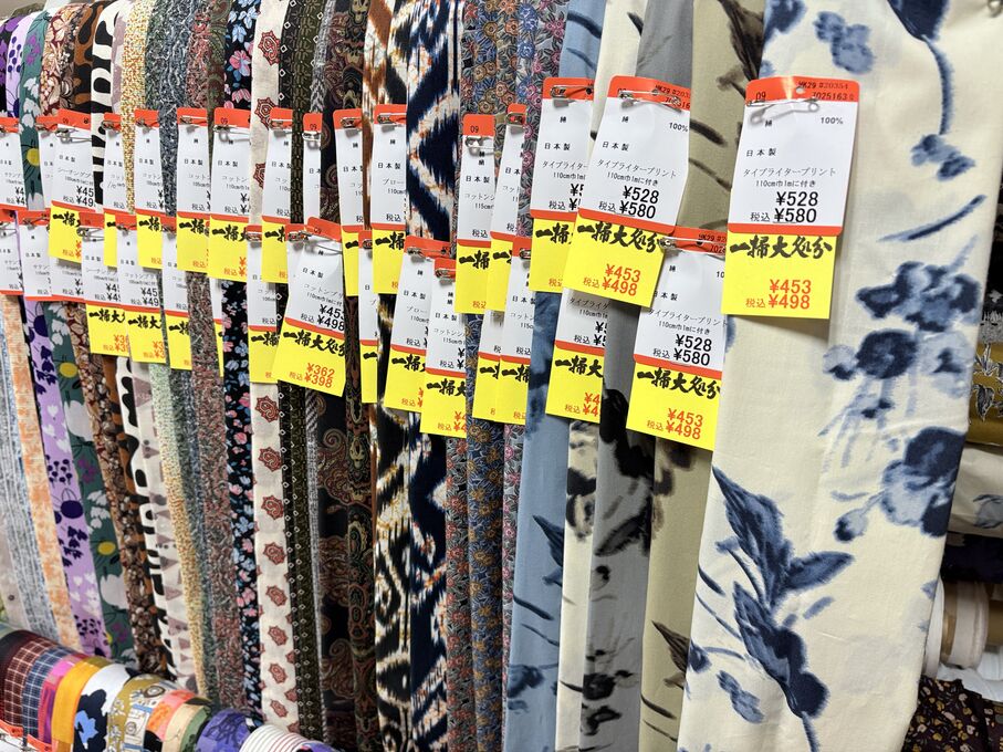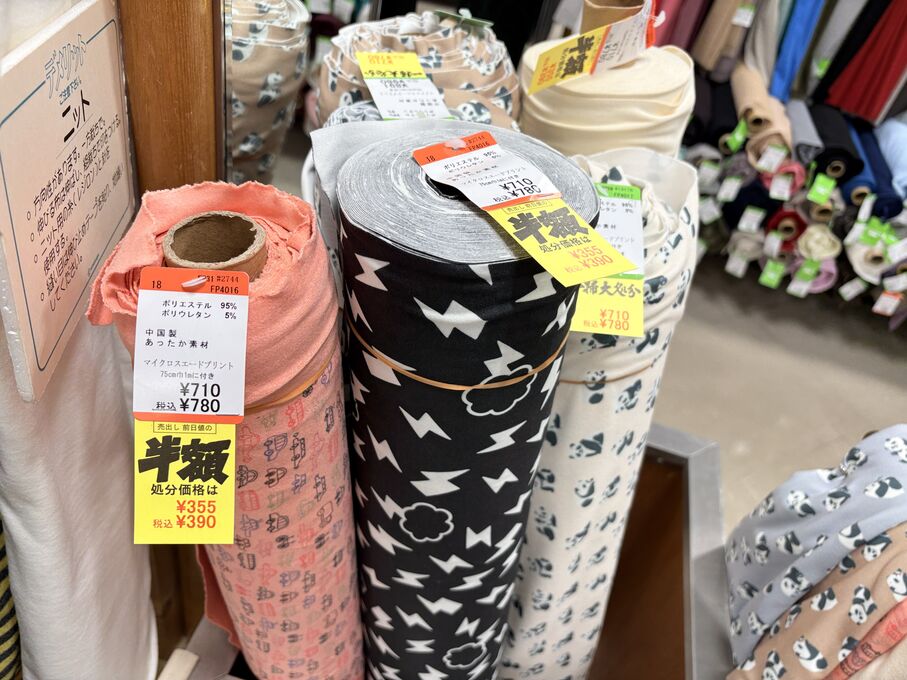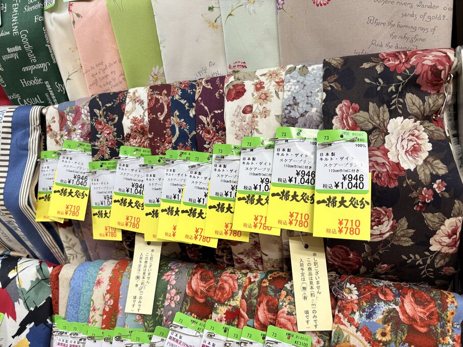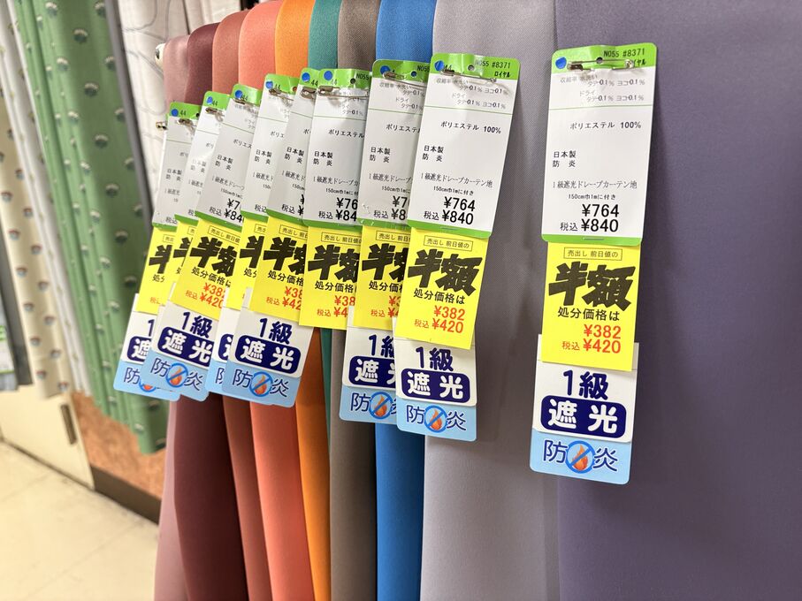 ぬのにちは♪大塚屋でございます。2026年1月30日~2月4日の6日間、大塚屋車道本店・江坂店・岐阜店で「冬の布地一掃大処分」のバーゲンセールを開催いたします。セール商品には、このように通常の値札の下に「黄色い特価札」を添付します。さらにくわしくは、開催直前に大塚屋実店舗のホームページ()のお知らせ欄に記載予定です。また、開催前日の1月29日(木)は全店舗定休日となりますが、以下の時間で商品紹介ライブの配信を予定しています。■2026年1月29日(木) 夜19時頃~(1時間半程度)大塚屋車道本店の店内で、弊社代表の大塚がお買い得商品を探索!生配信をしながら、4階 → 3階 → 2階 → 1階