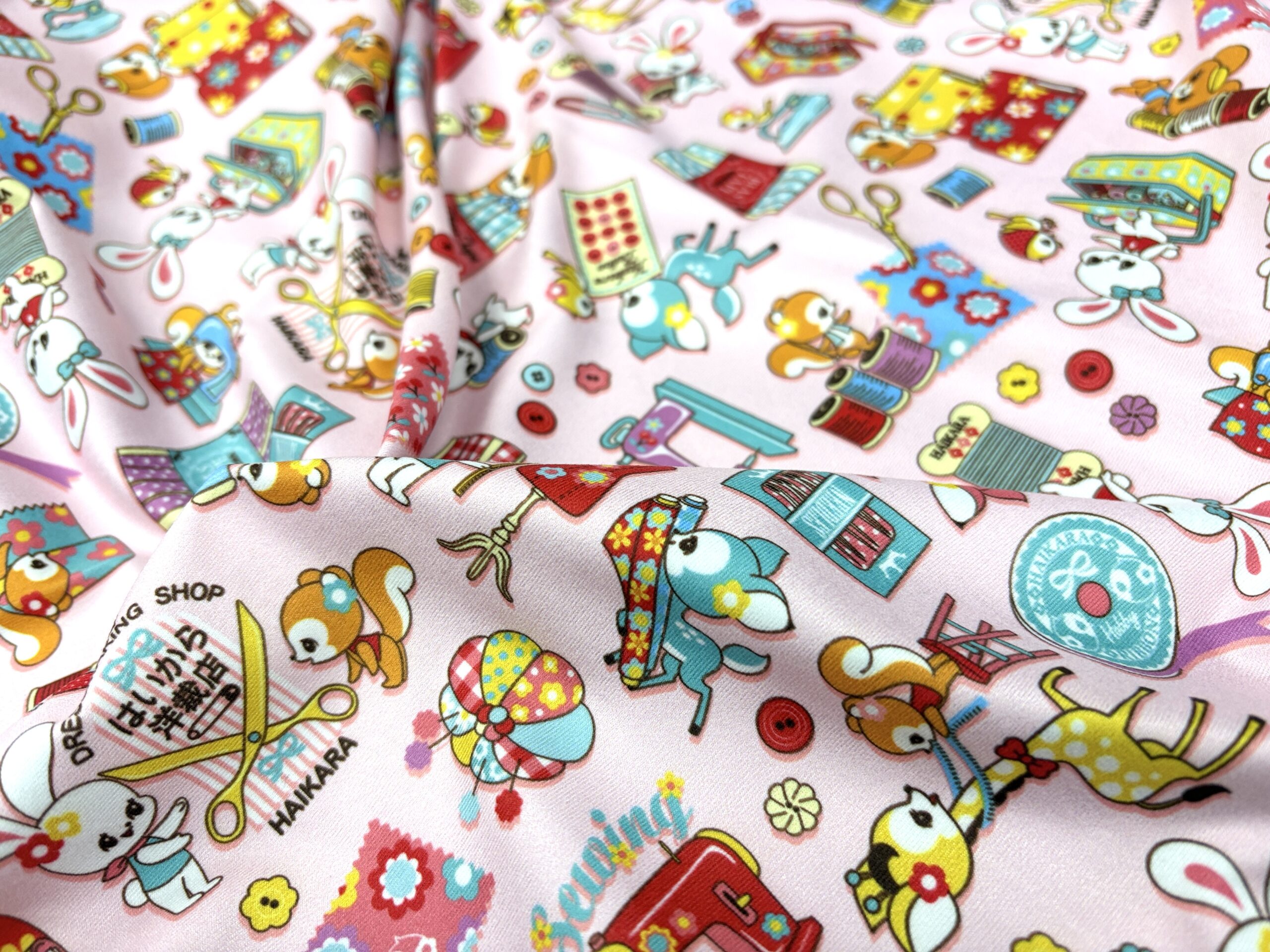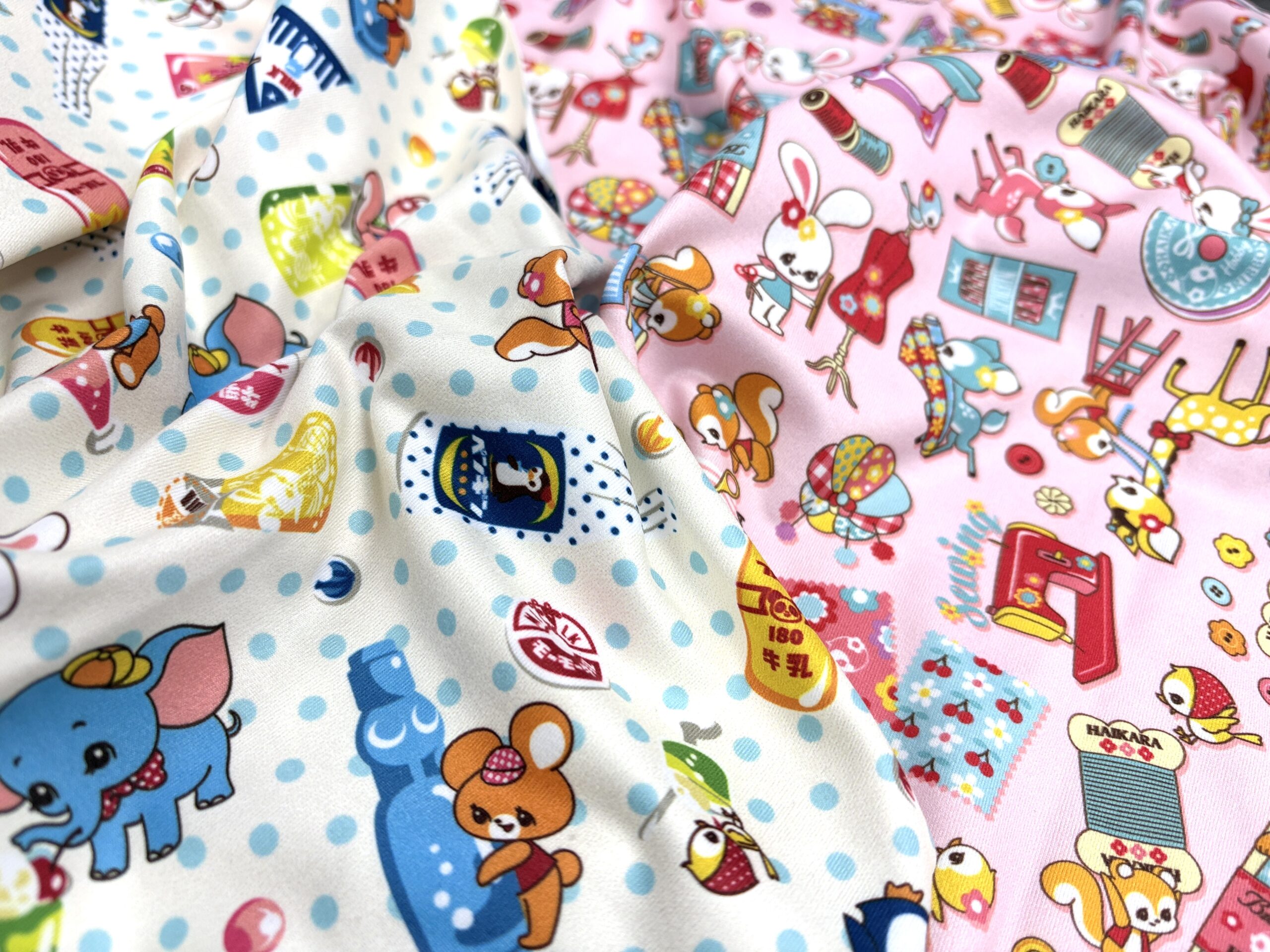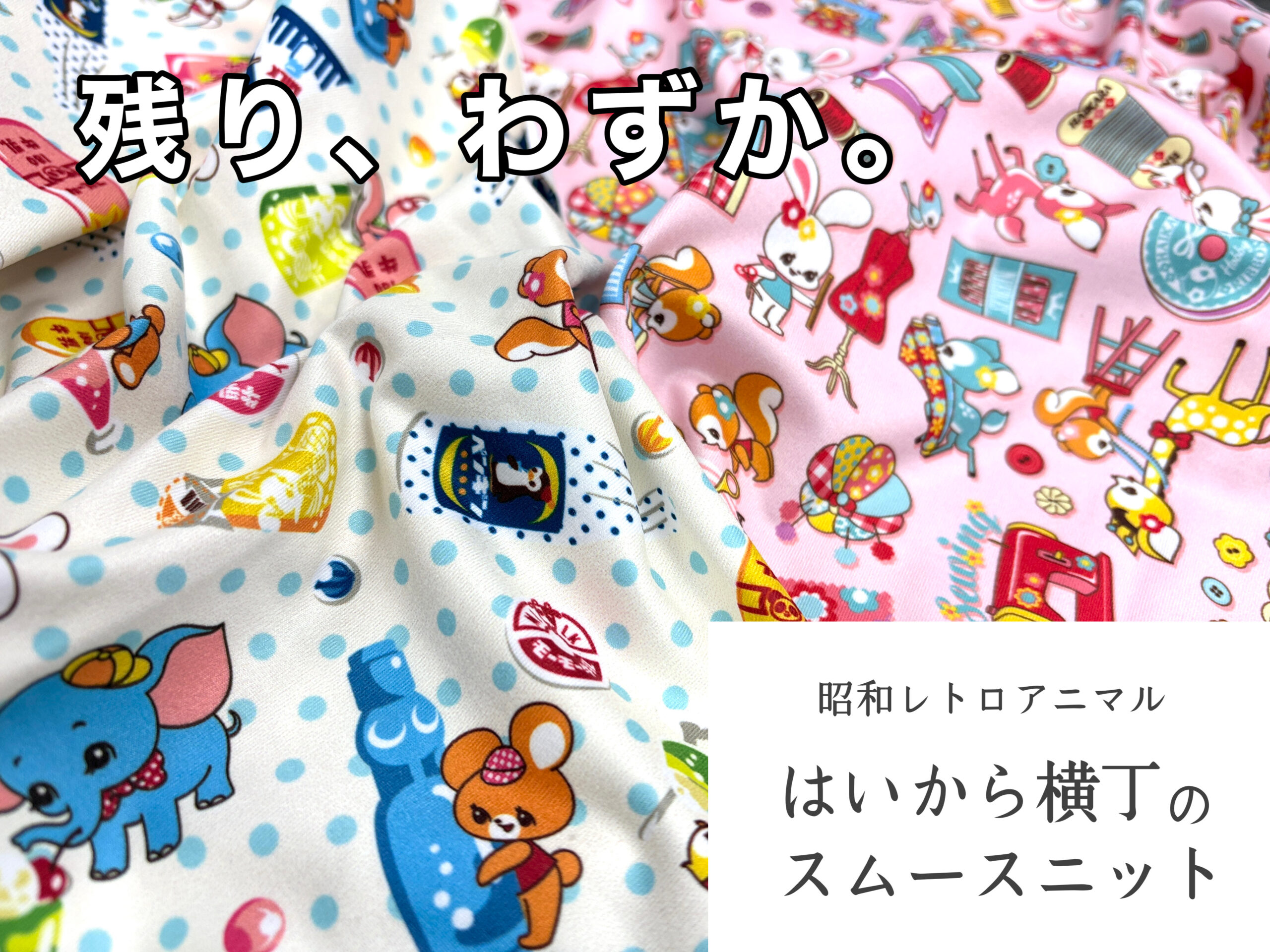 昨年秋ごろに発売をいたしました、名作・昭和レトロアニマル柄「はいから横丁(はいから横町)」シリーズのポリエステルのスポーツニット生地。