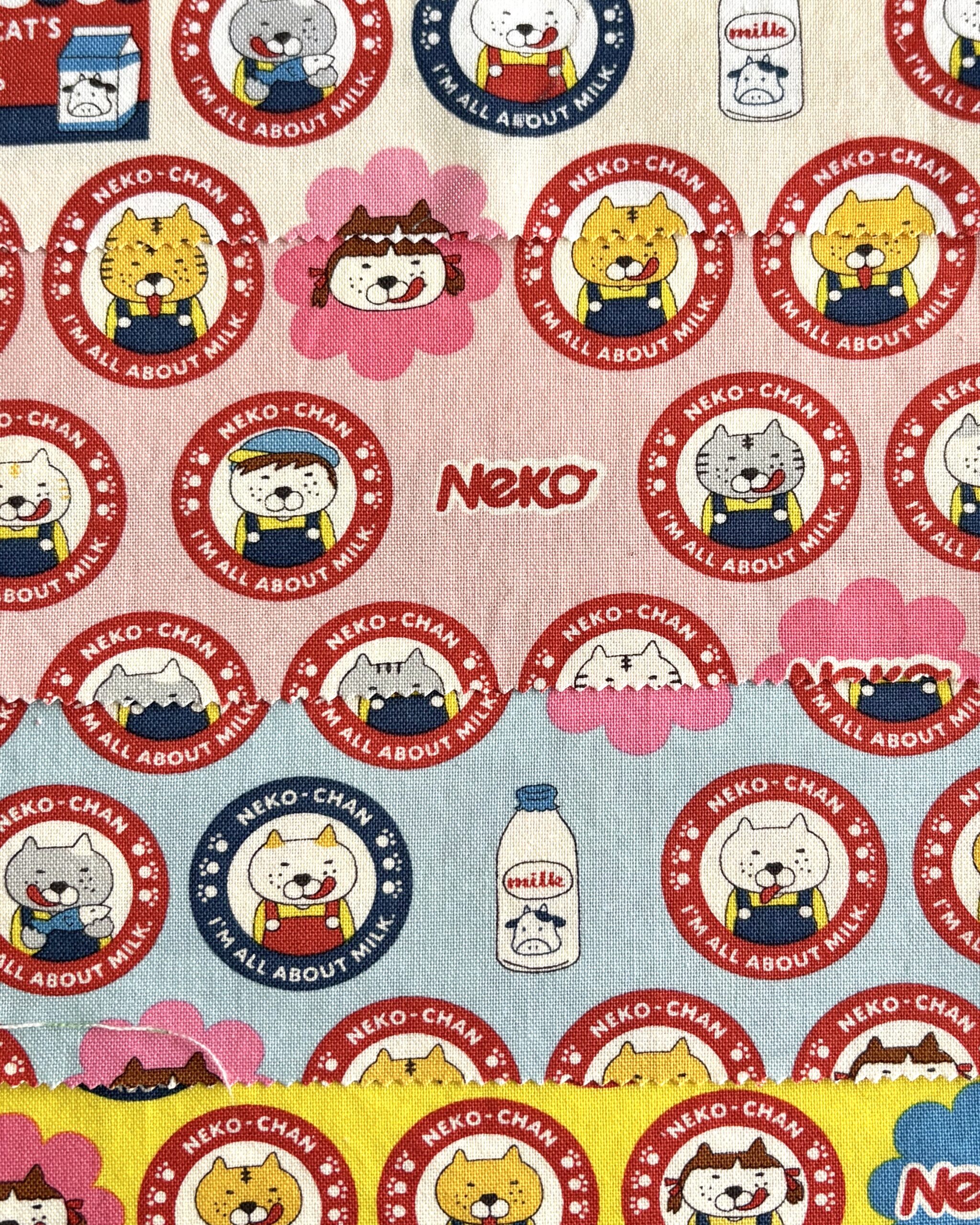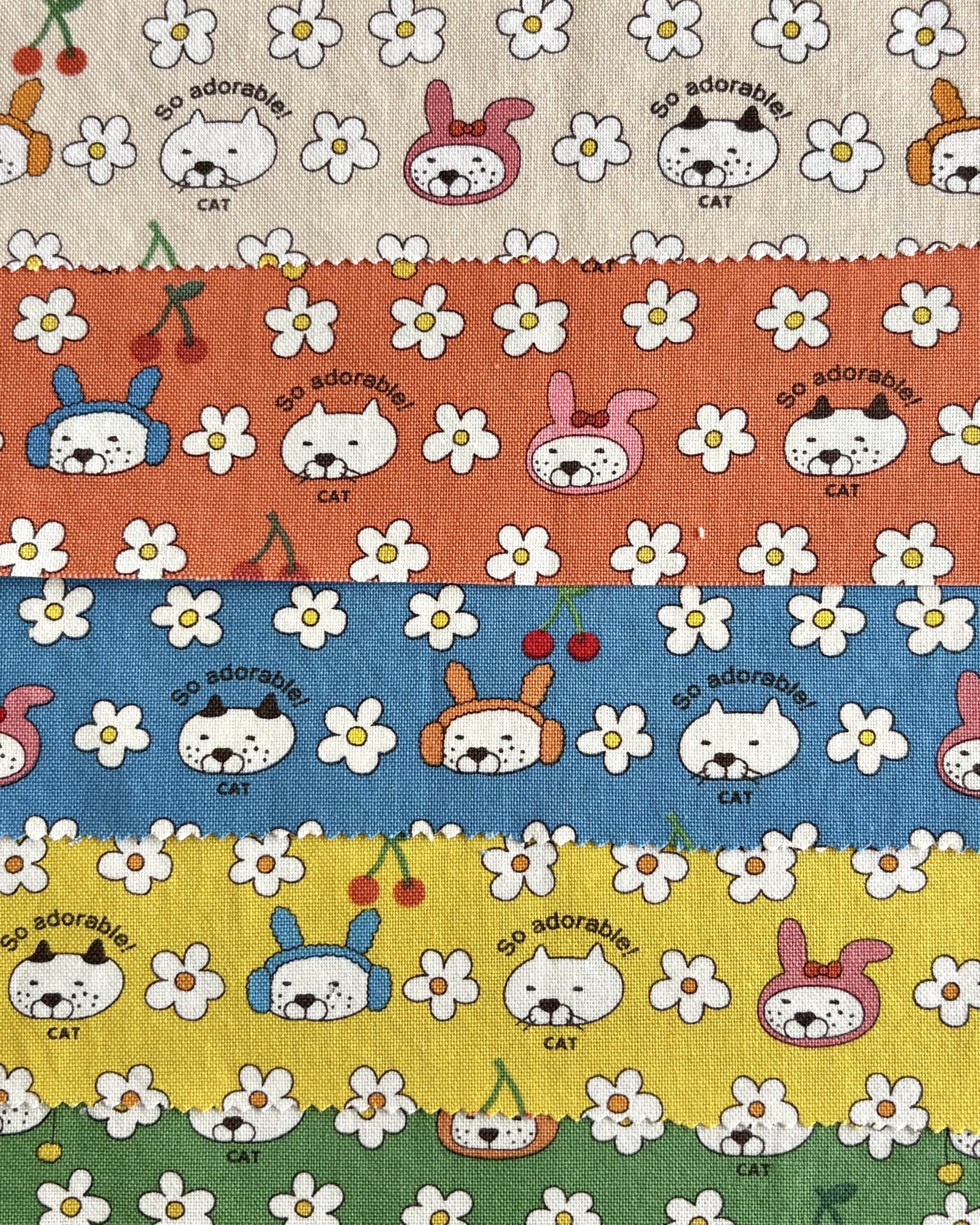 お次はウサギさんのかぶりものをした、とても可愛いネコさんたち!生地に記されている「So adorable!」というのは、なんと「とても可愛い!」という意味です。とても可愛いので、とても可愛いとストレートに表現されていますね。