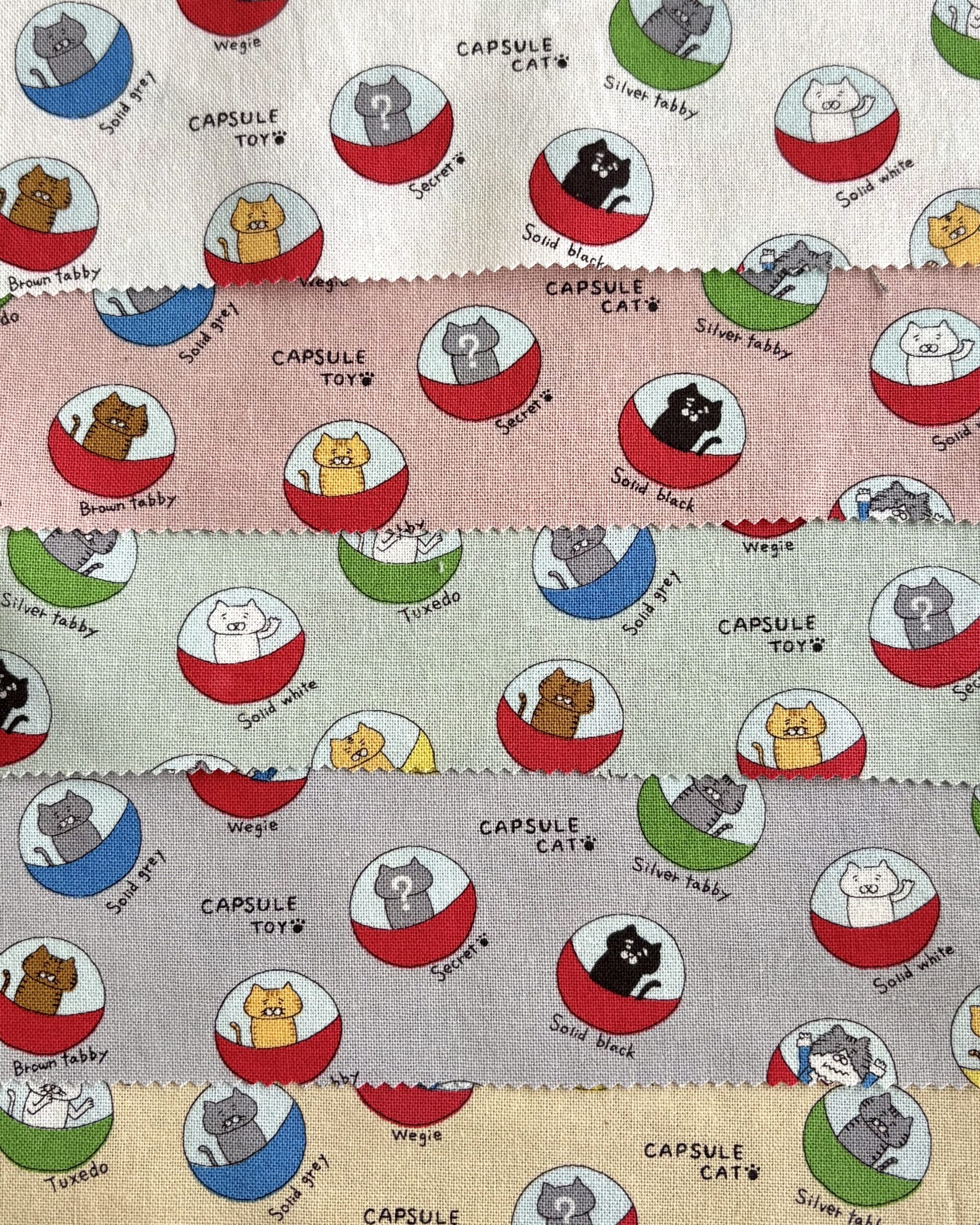 続いては「カプセルトイ」がテーマのキャンバス生地です。いろんな模様のネコさんにまぎれて「シークレット」が含まれているのが、ガチャ魂をくすぐります。