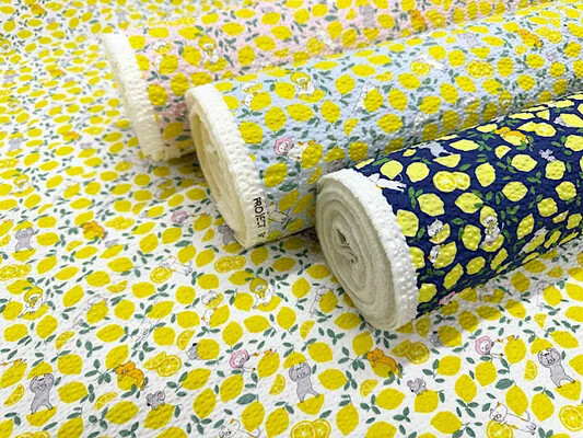 コットンこばやしリップルプリント「レモンねこ」