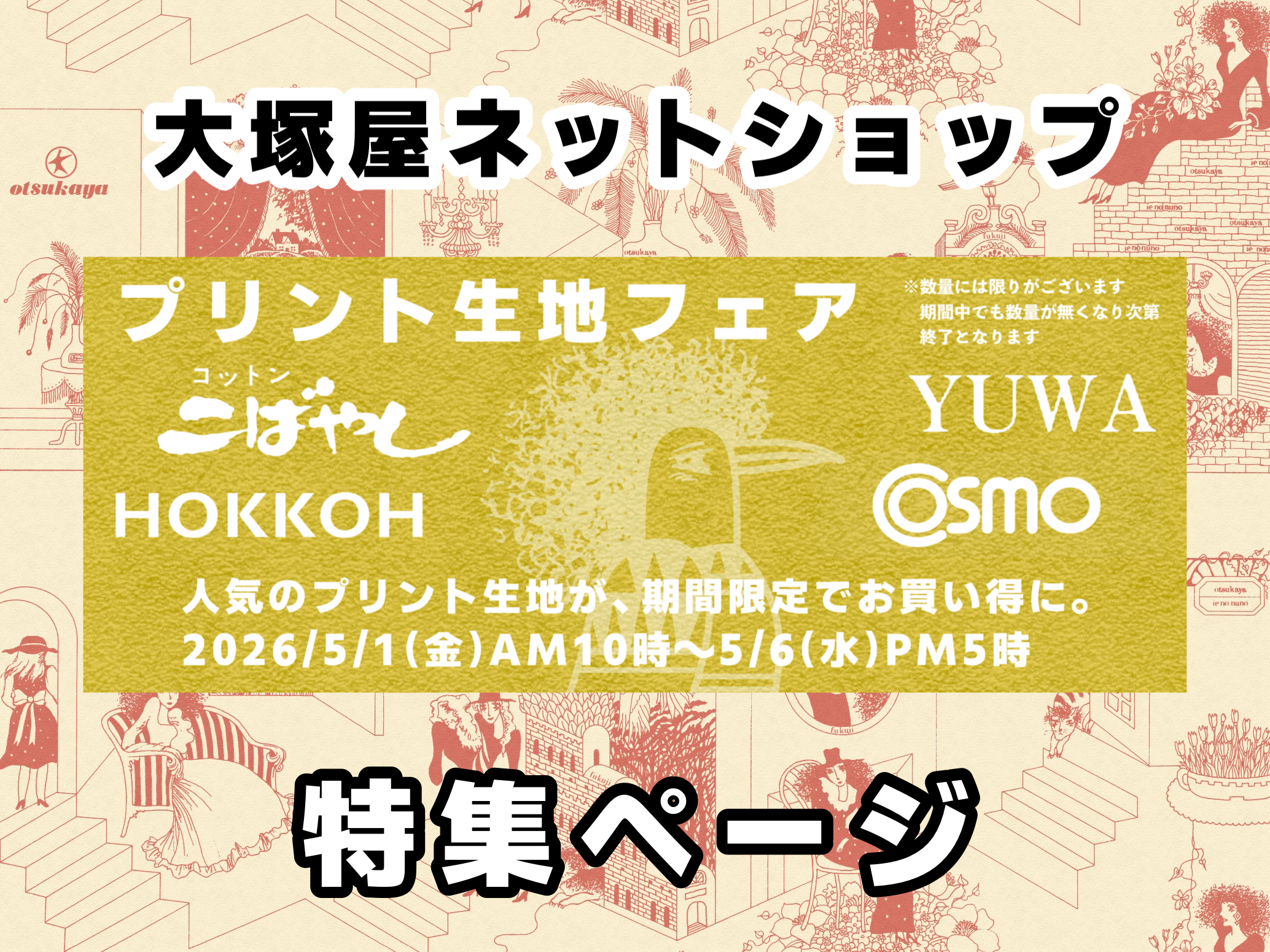 実店舗も、通販も。今年のゴールデンウィークは、ぜひ大塚屋の「プリント生地フェア」をお楽しみくださいませ!