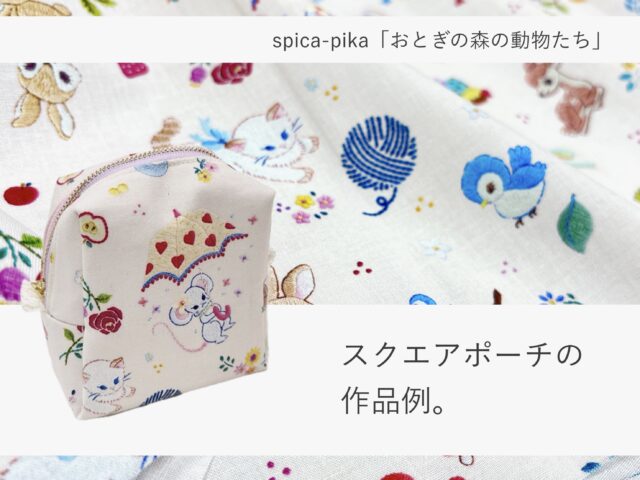 動物刺繍作家 spica-pika(スピカピカ)さんの布「おとぎの森の動物たち」でつくるスクエアポーチ