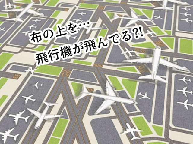プリント生地 まるで生地の上空を飛行機が飛んでるみたい!『TAKE OFF!空港滑走路のオックスプリント』